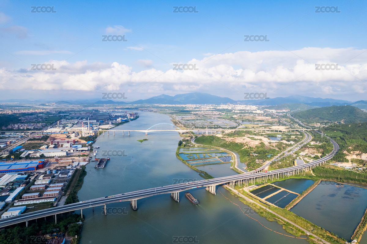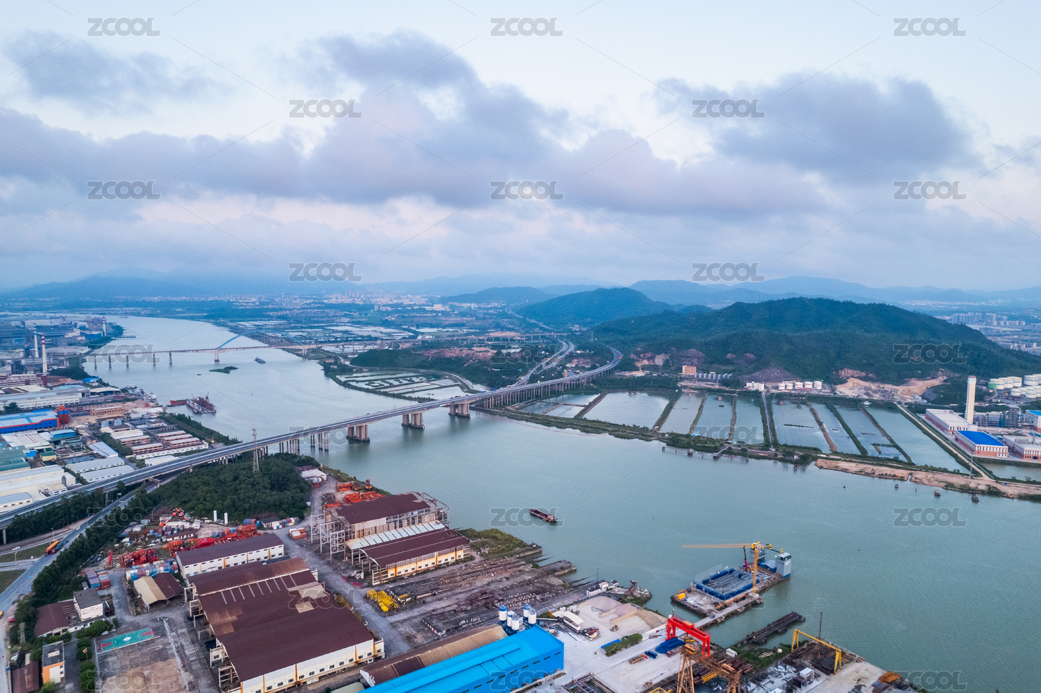 中国广东省中山市中山港码头和中山港大桥以及深中通道全景