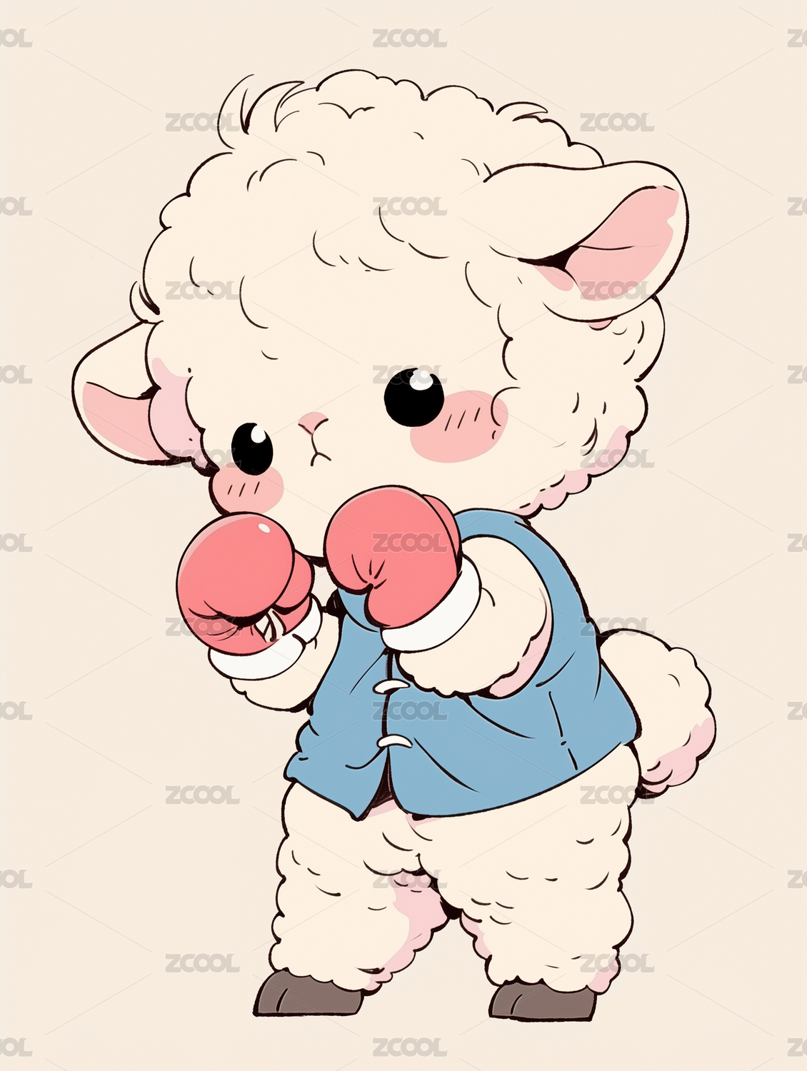 小羊动物拟人图案运动拳击高尔夫