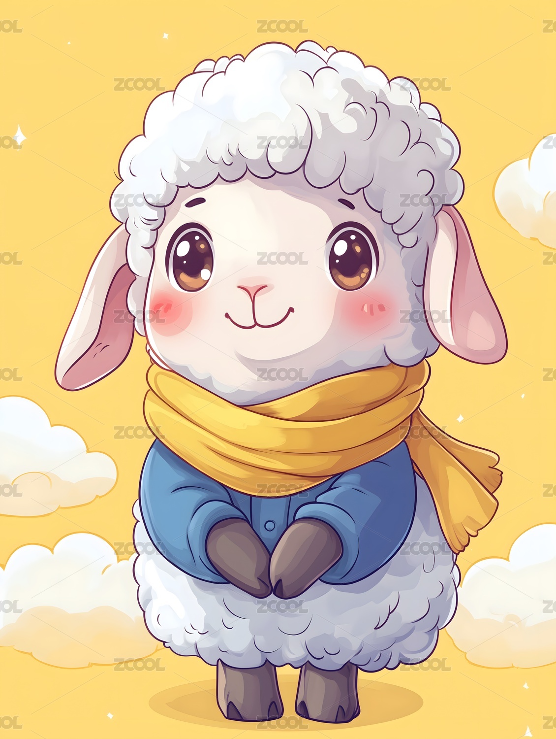 穿着围巾的可爱小绵羊