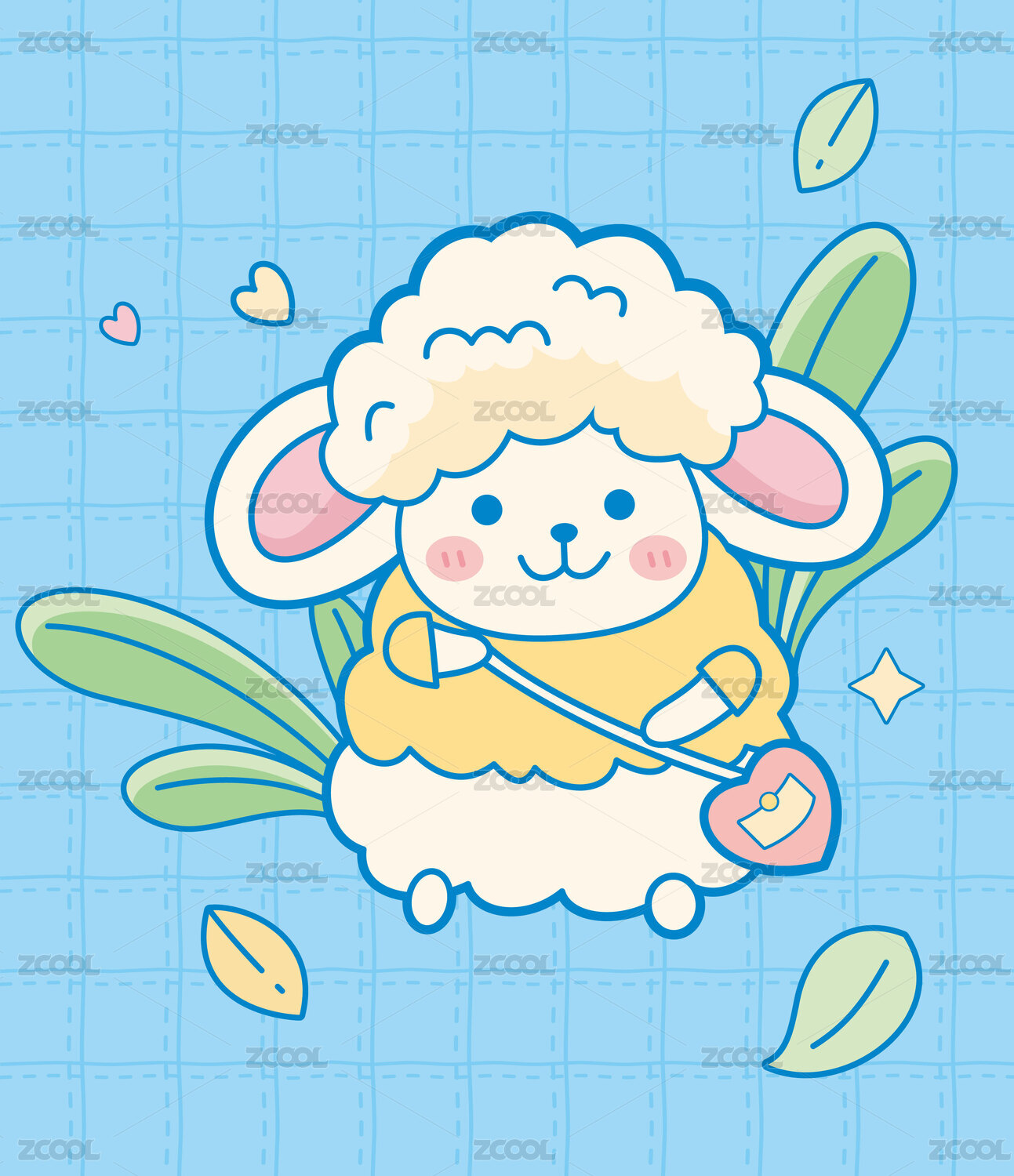绵羊背着斜挎包的卡通