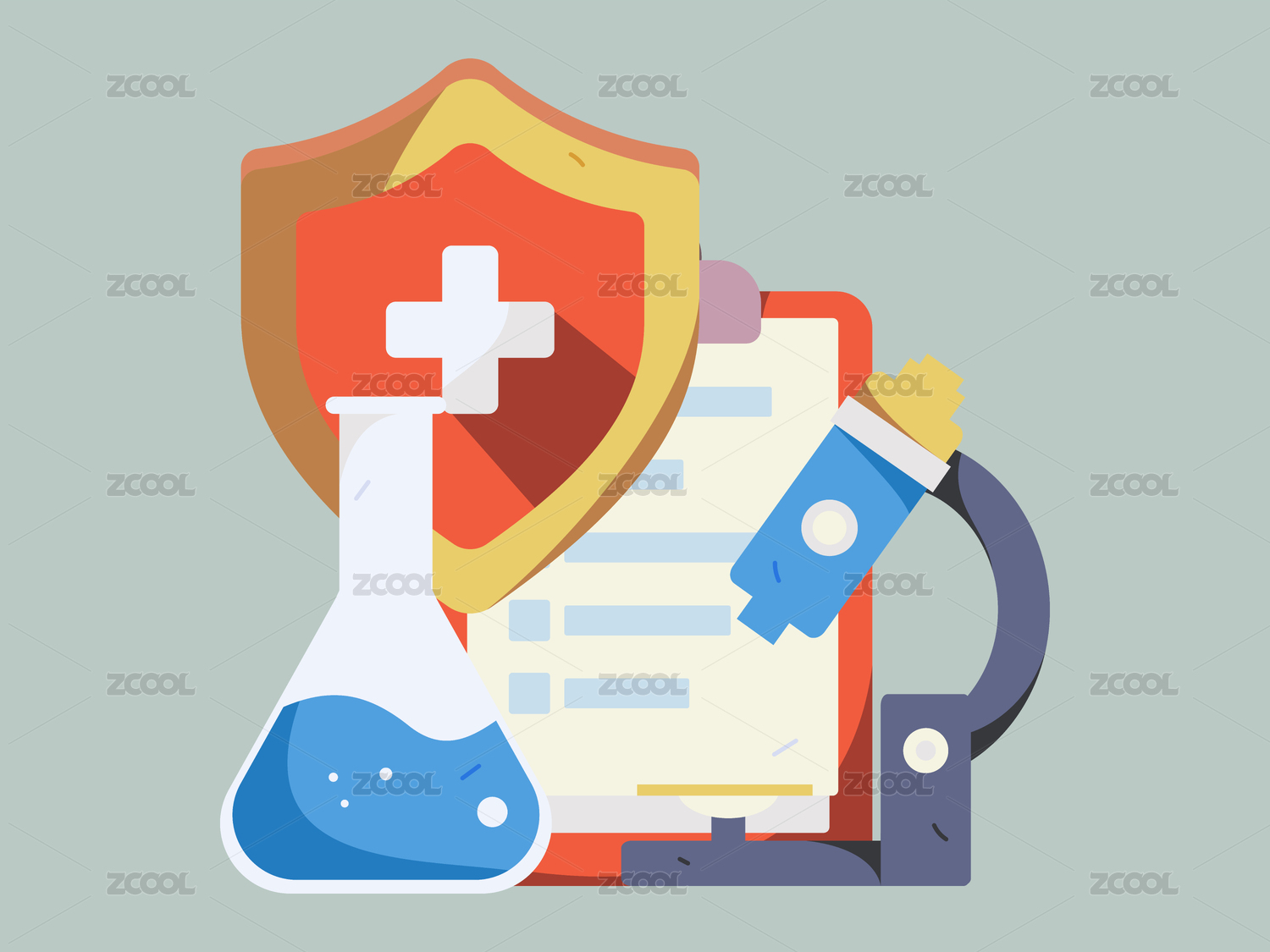 医疗,器械,插画,针管,注射,听诊器,铅笔,笔记,记录,扁平