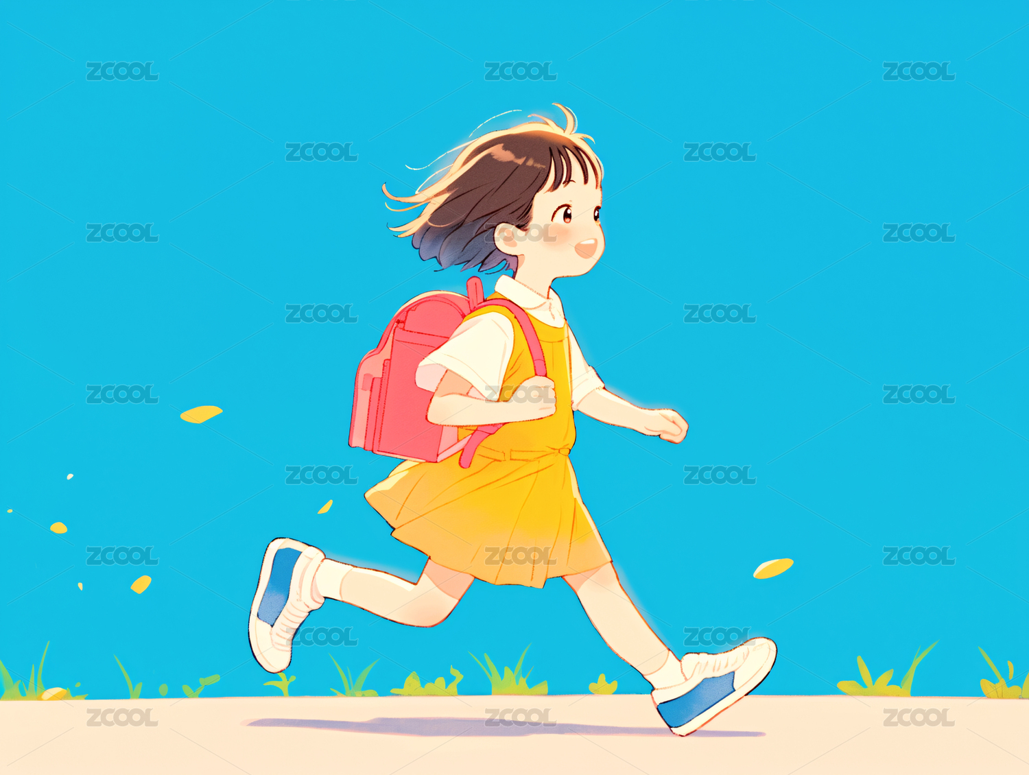 小学生背书包上学儿童节教育概念插画