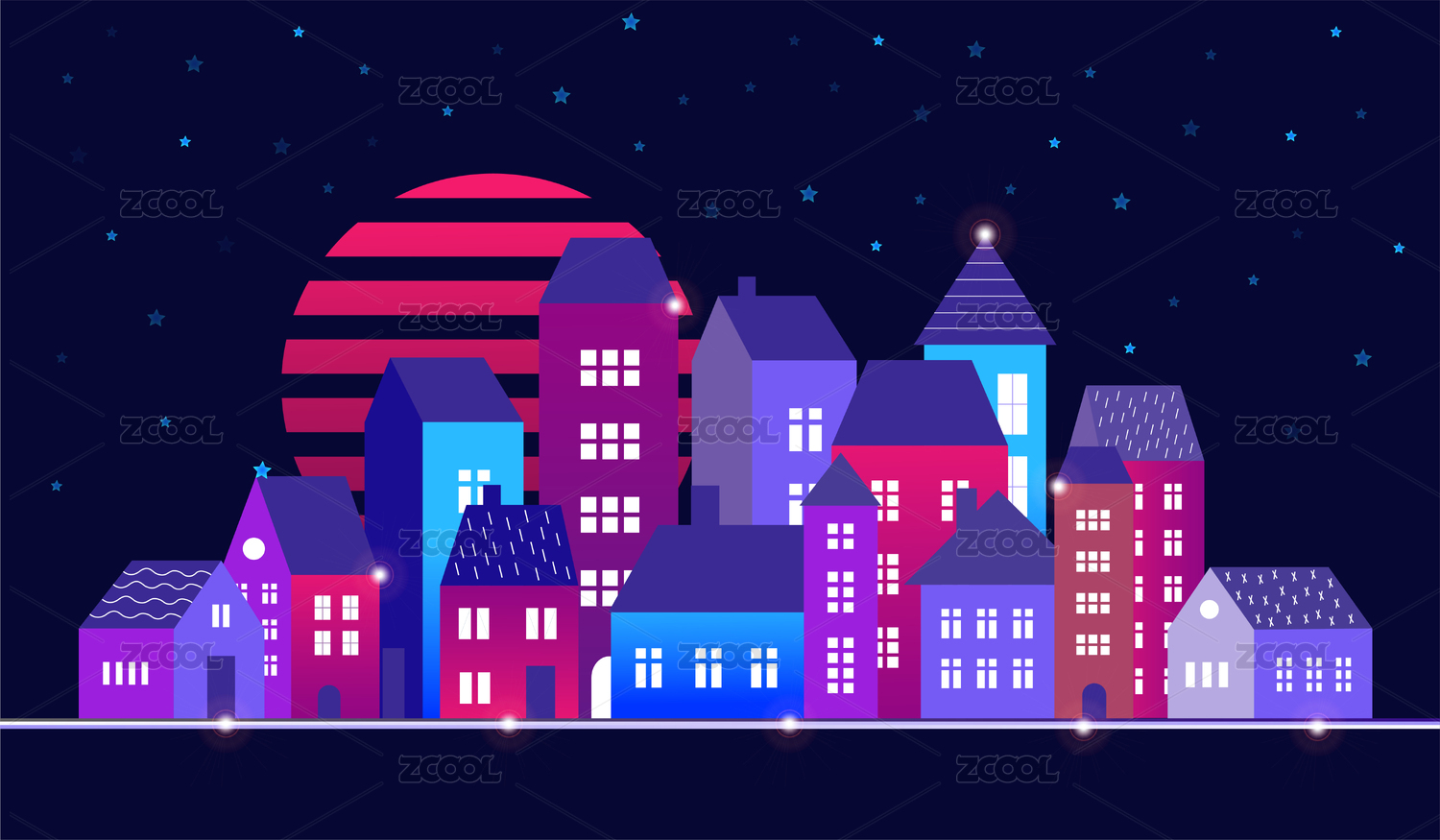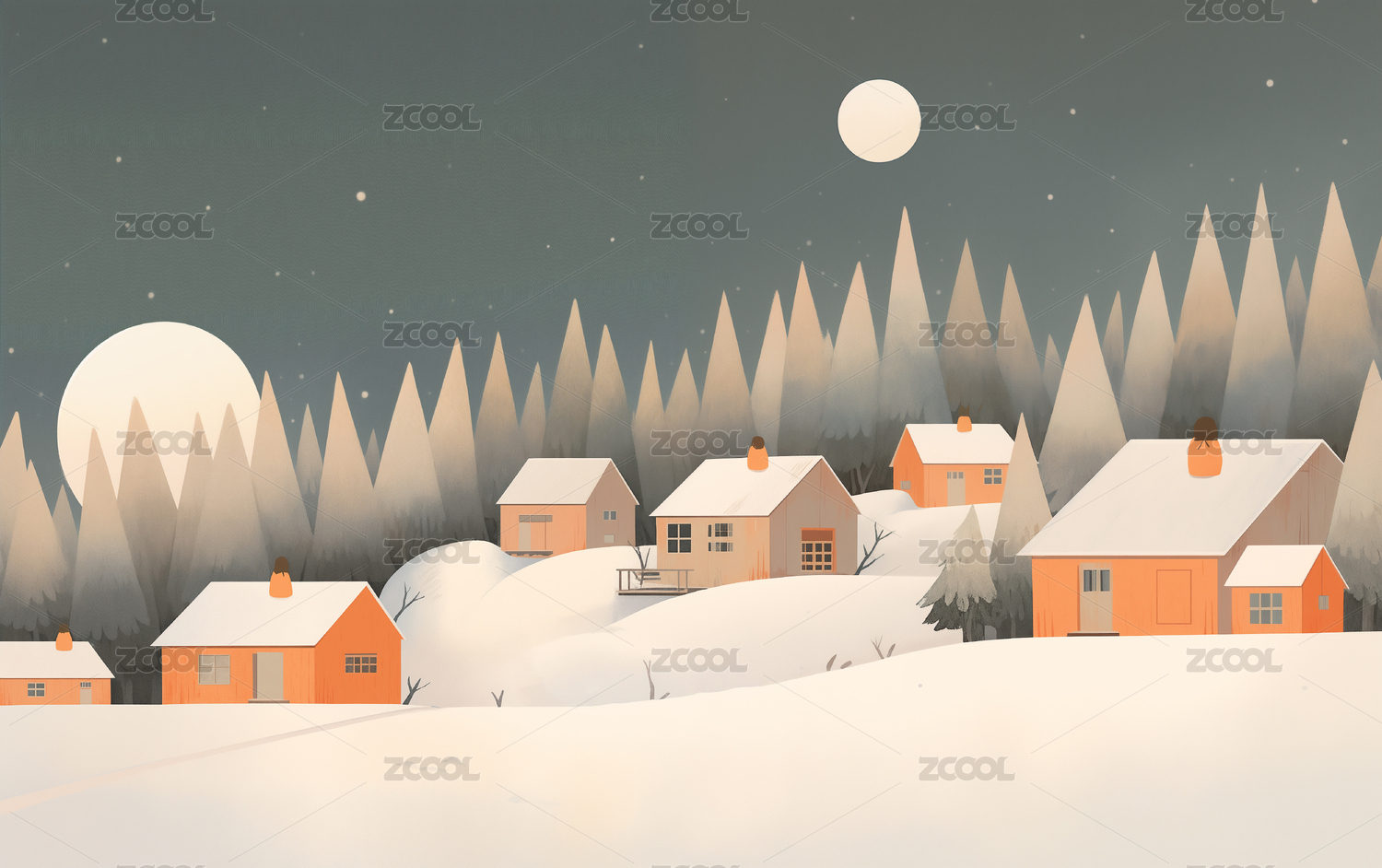 星空,夜晚,宁静,树木,蓝色,温暖,房屋,建筑,简约,舒适