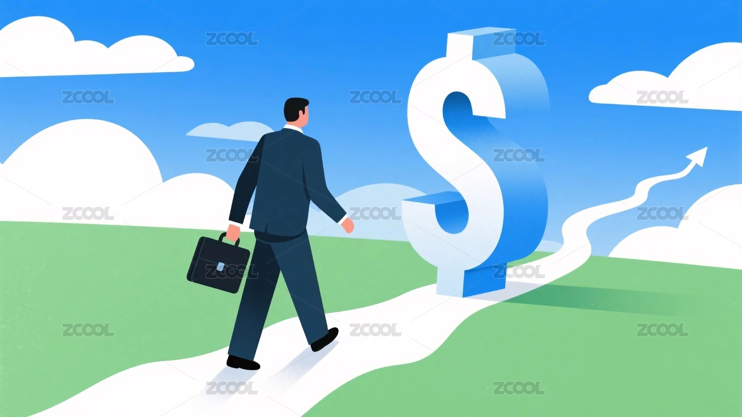 商人为买房、买车奋斗。储蓄和投资的概念。未来的财务规划的概念。矢量图