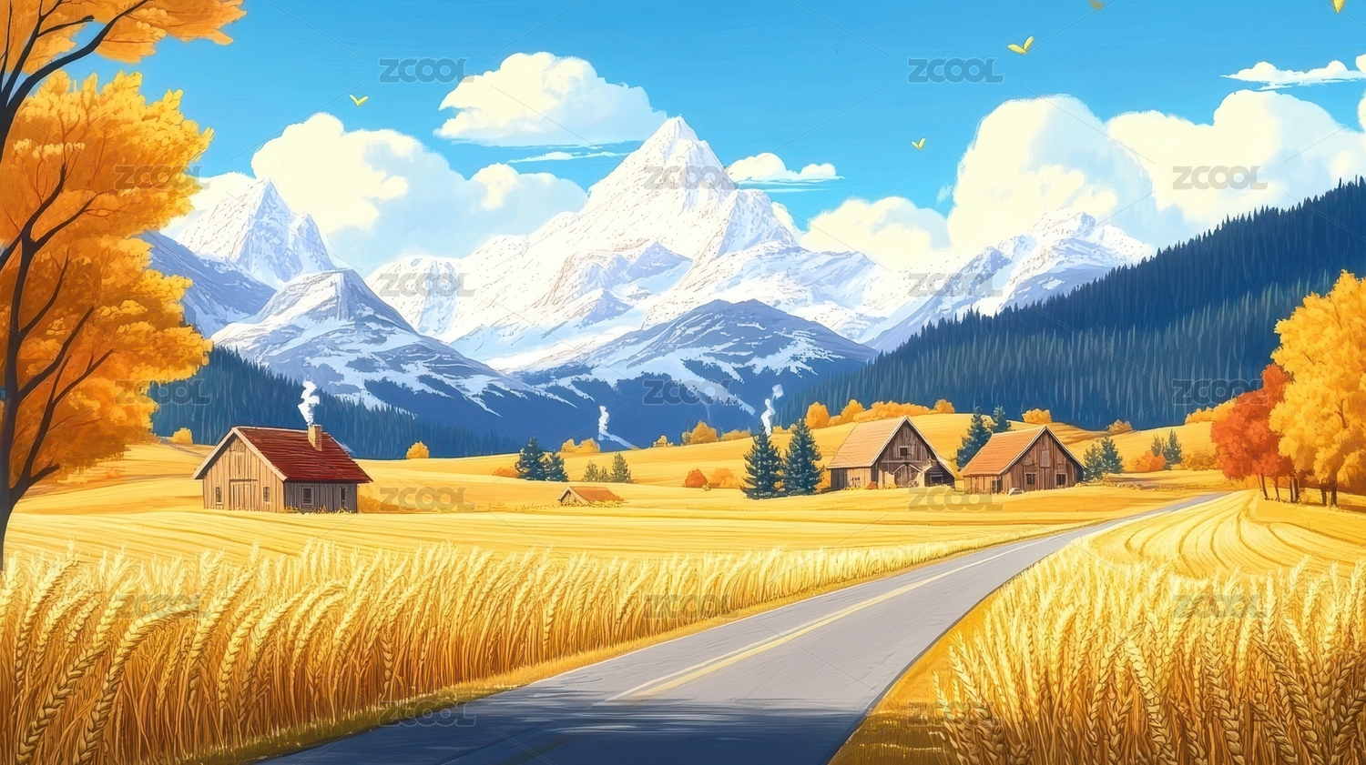 秋日田园公路风景