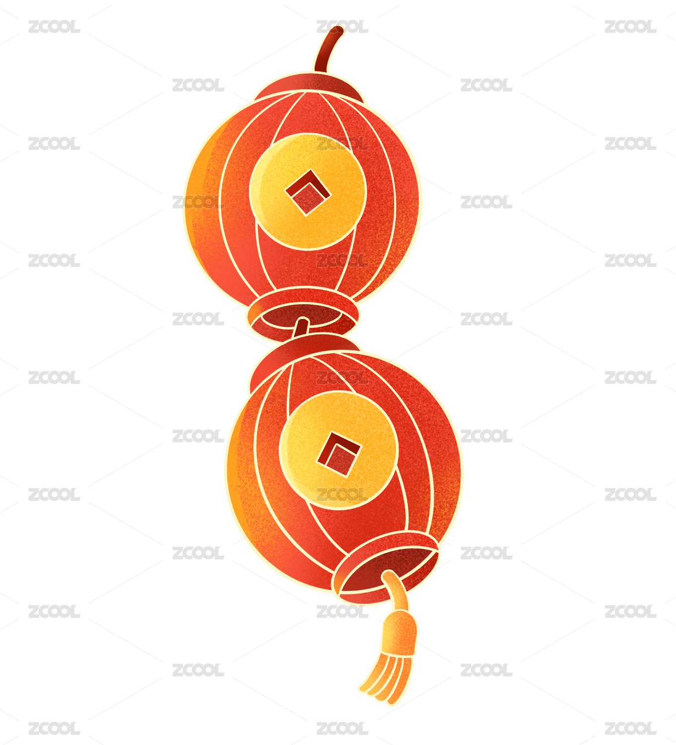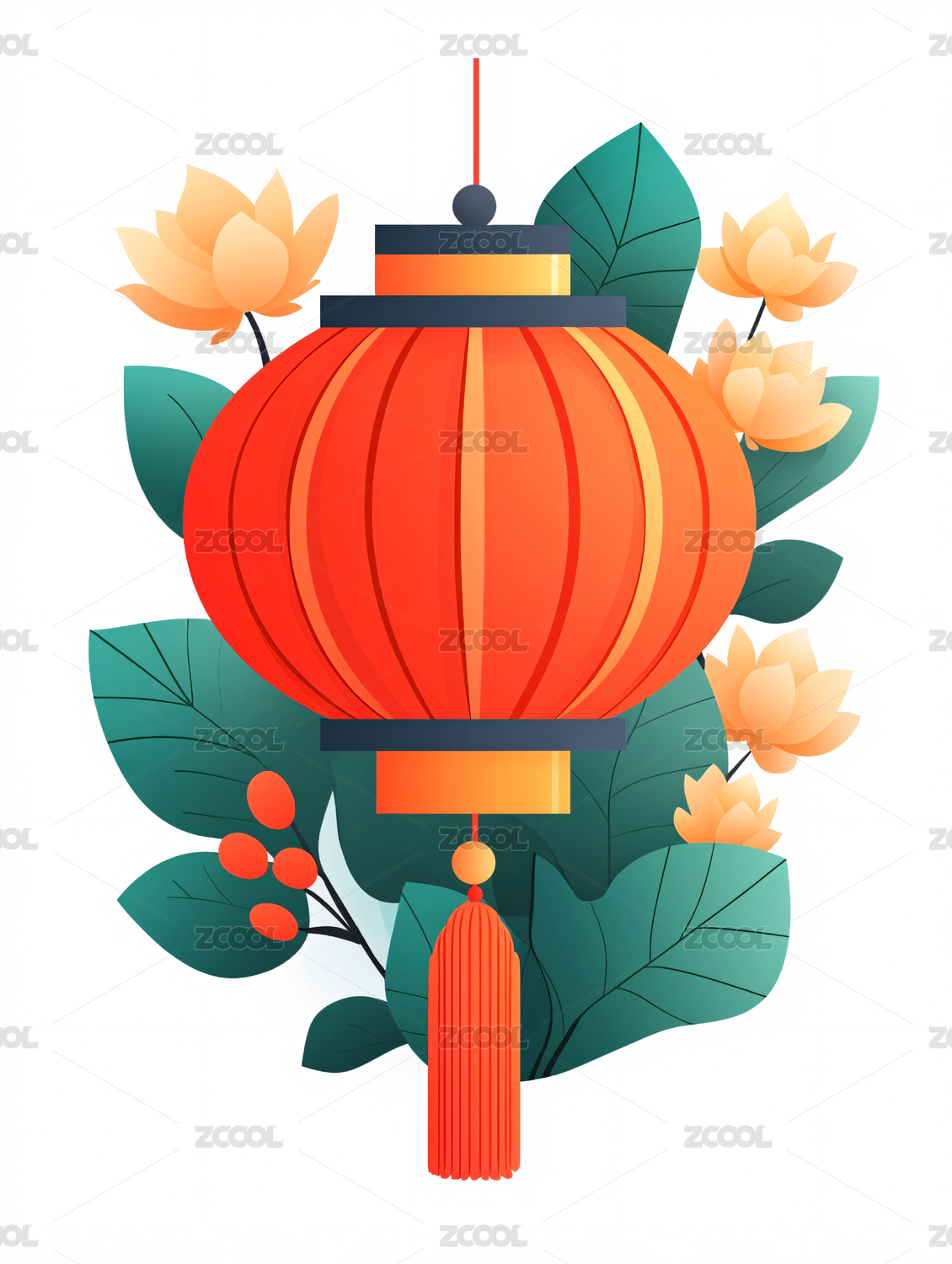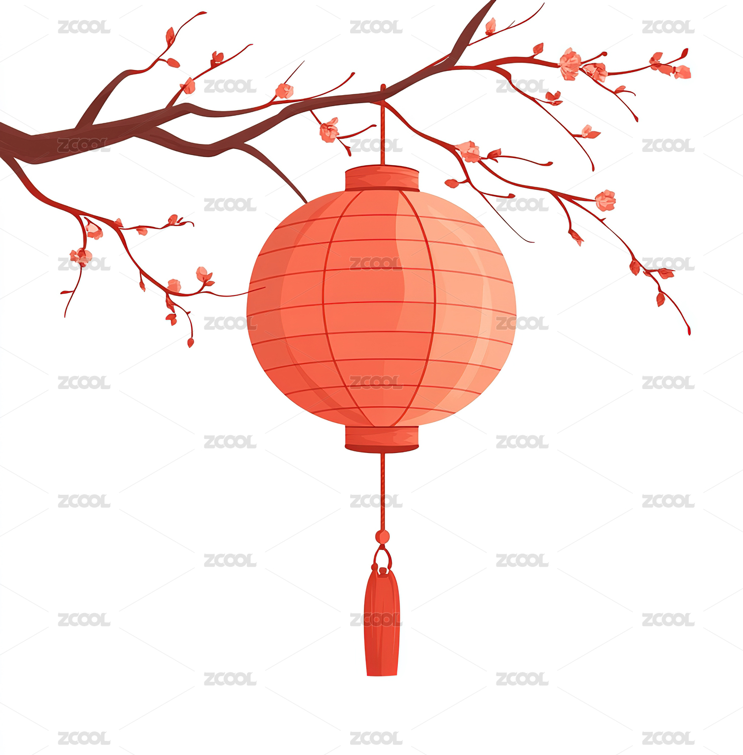 红色喜庆树枝祥云烟花立体剪纸灯笼和花元素