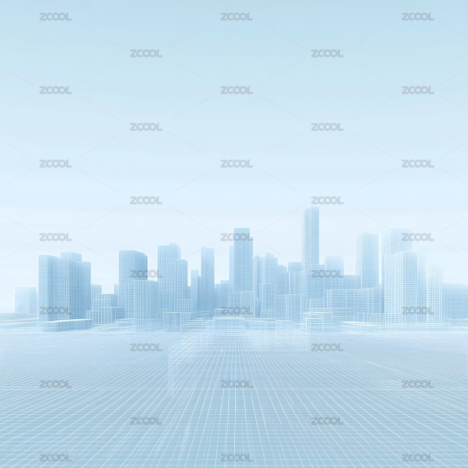 轻盈蓝调未来都市线框图