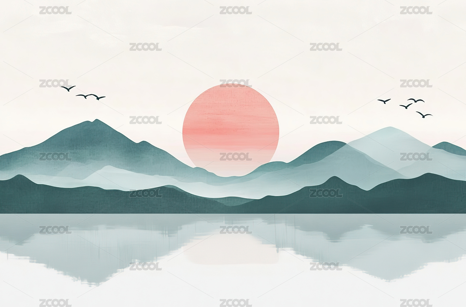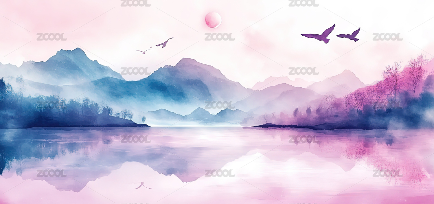 唯美山脉风景水墨插画