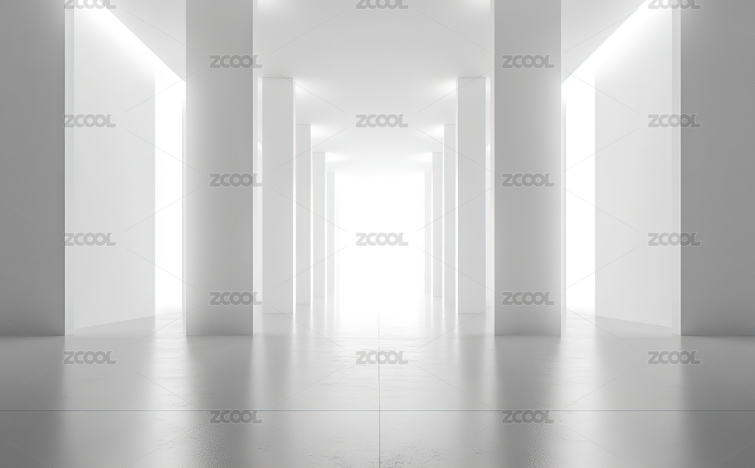 白色长廊与柱子的极简空间