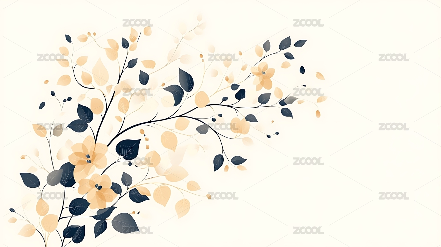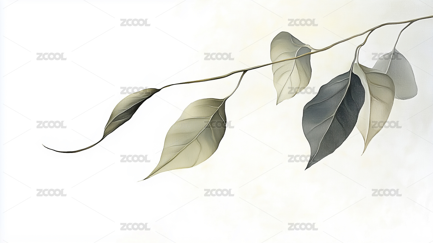 淡雅花卉枝叶图