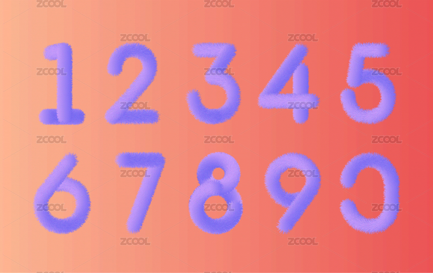 卡通风格的三维立体的数字0到9数字表,白底抠图素材