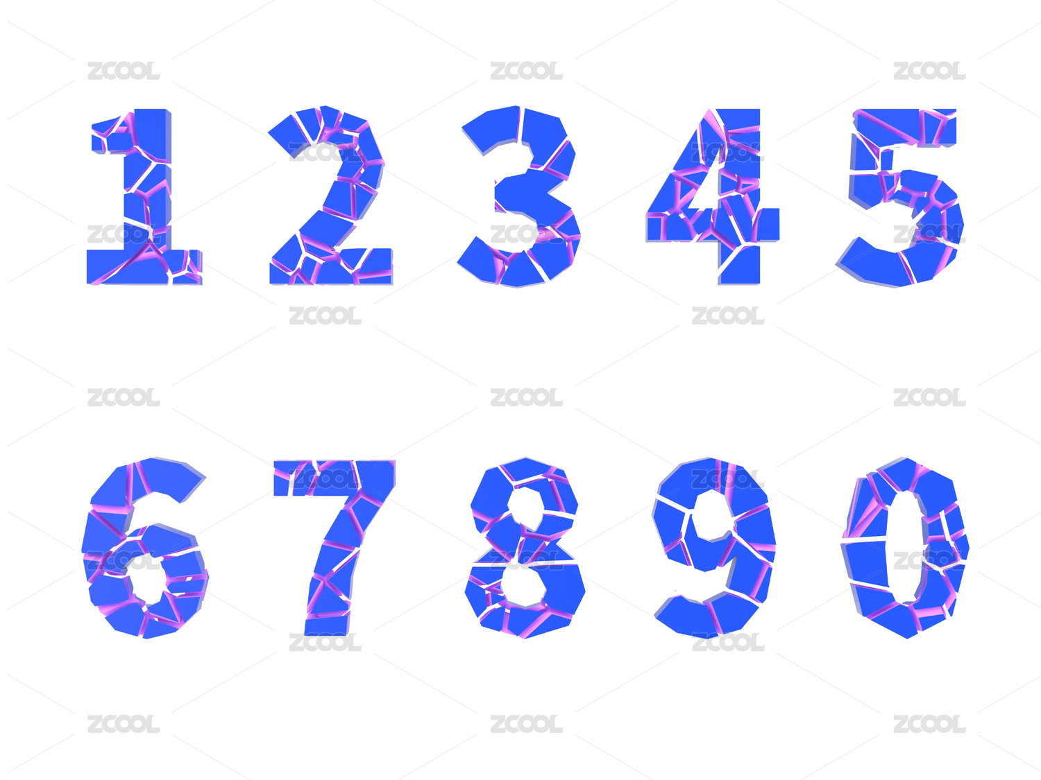 从0到9的赛博朋克霓虹倒计时立体数字合集