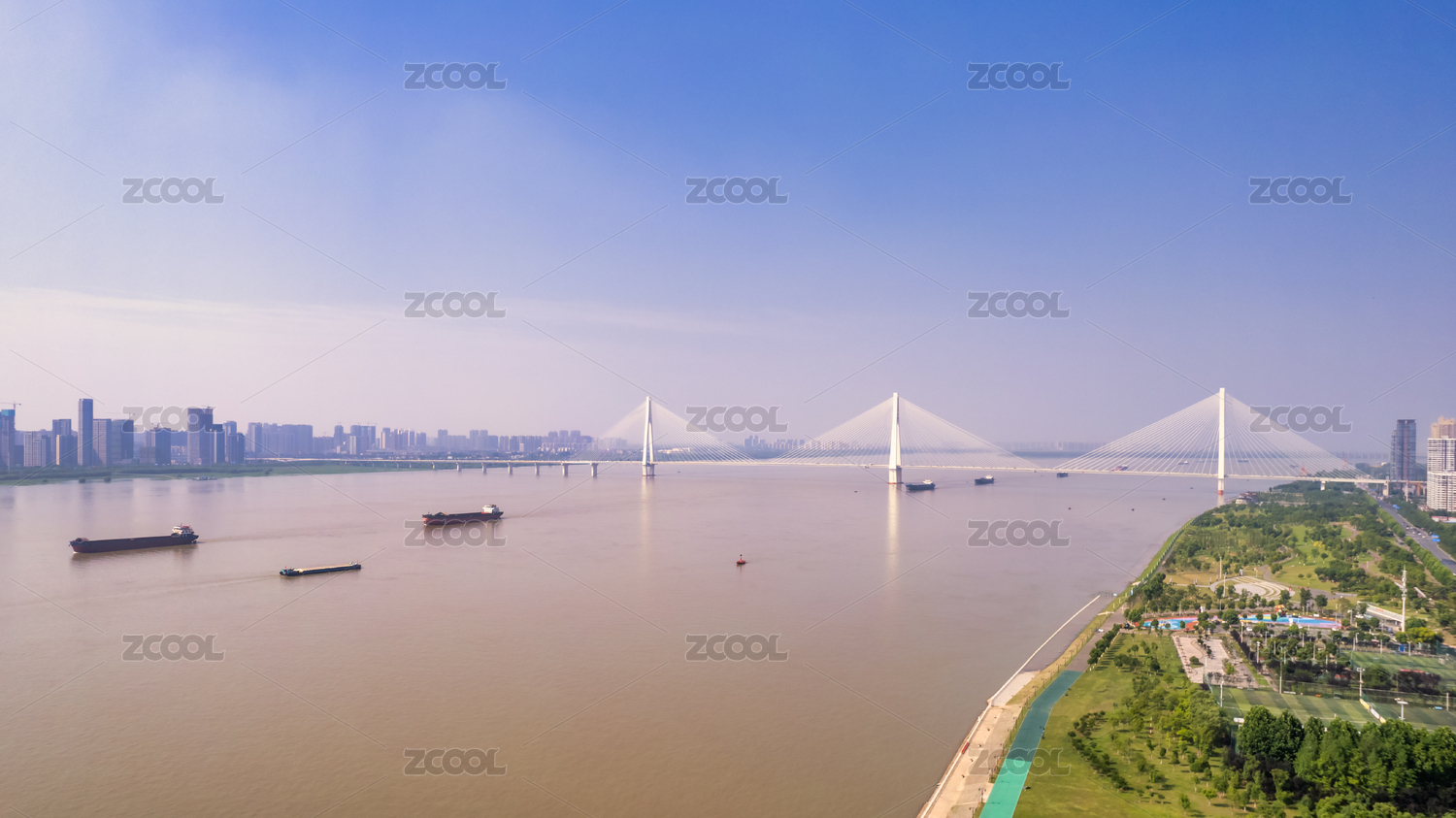 中国湖北武汉长江二桥与二七长江大桥航拍