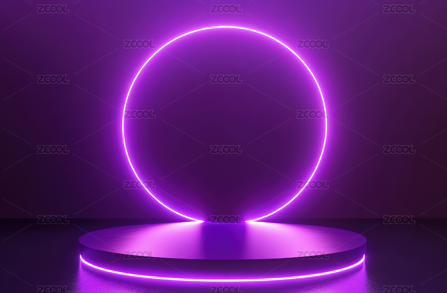 3D渲染霓虹灯带暗色圆形底座产品展台