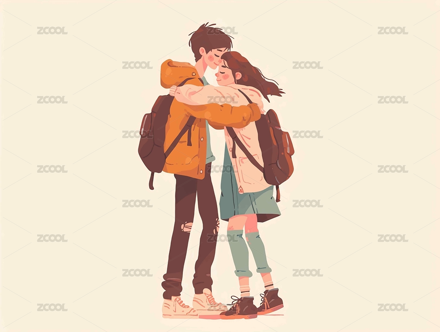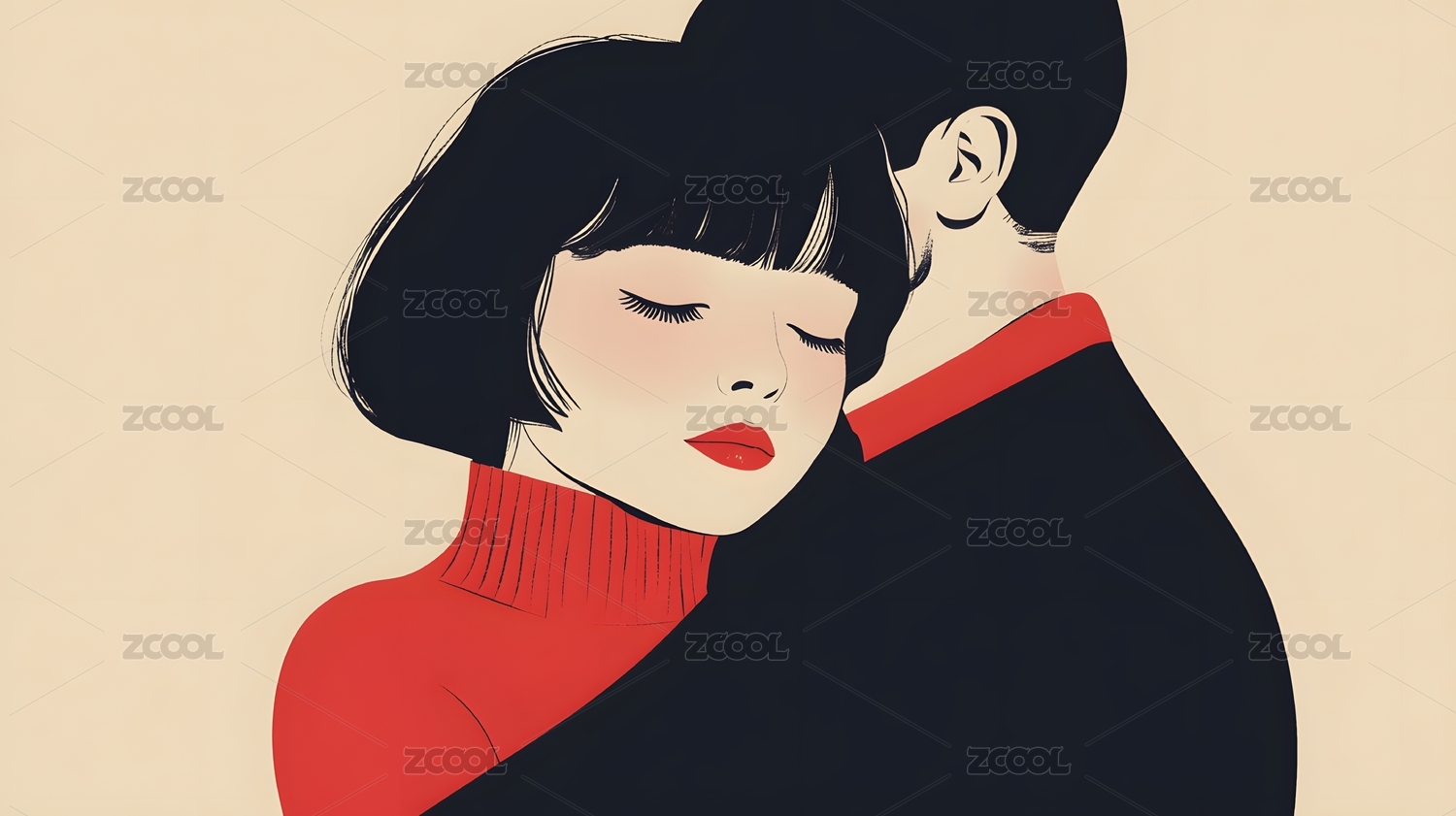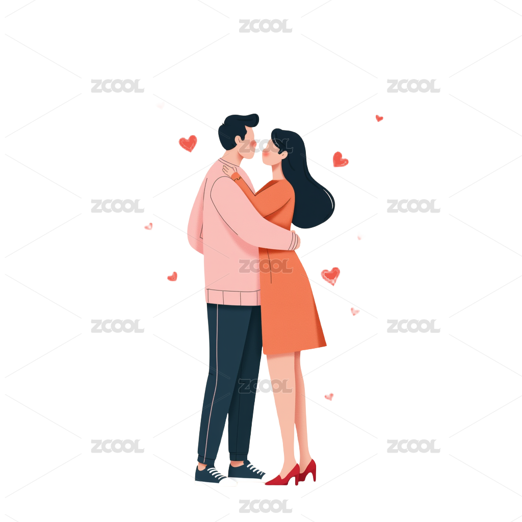拥抱在一起的情侣手绘插画