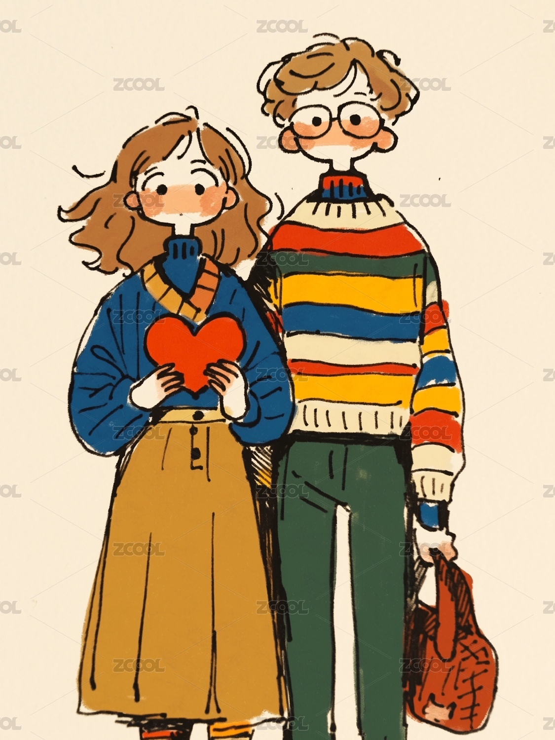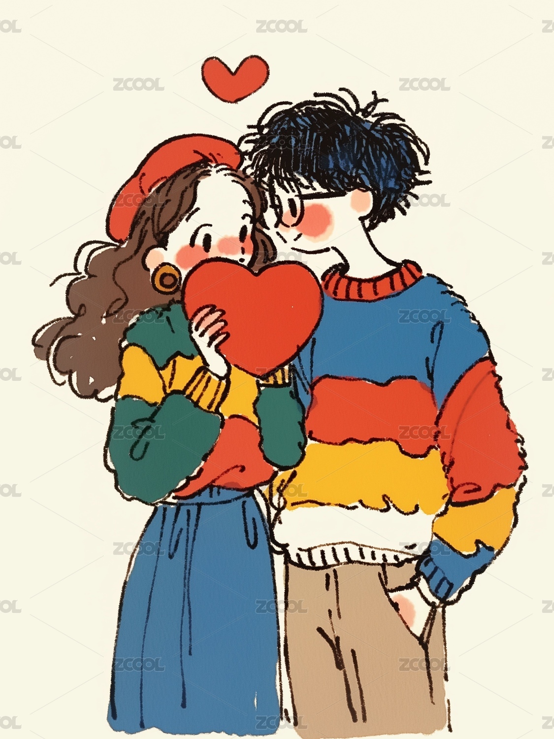 手捧爱心的情侣插画