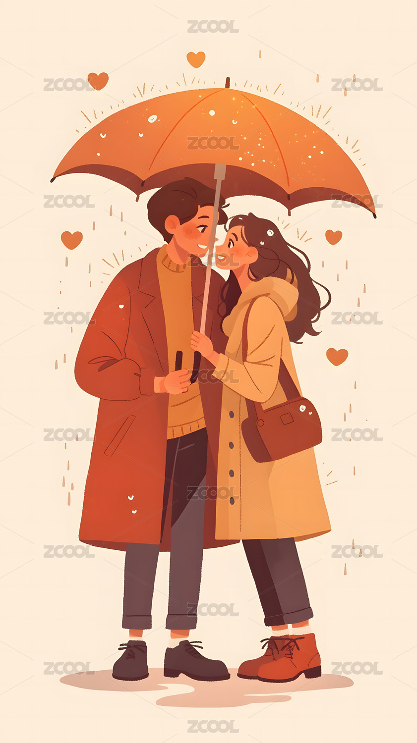 雨天撑着伞的情侣
