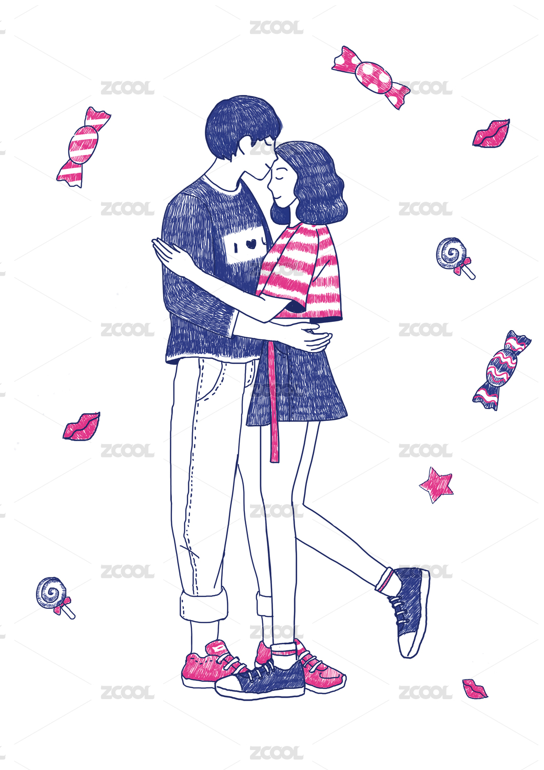 情侣,情人节,情人,爱情,夫妻,吻,手绘人物,卡通,原创,商用