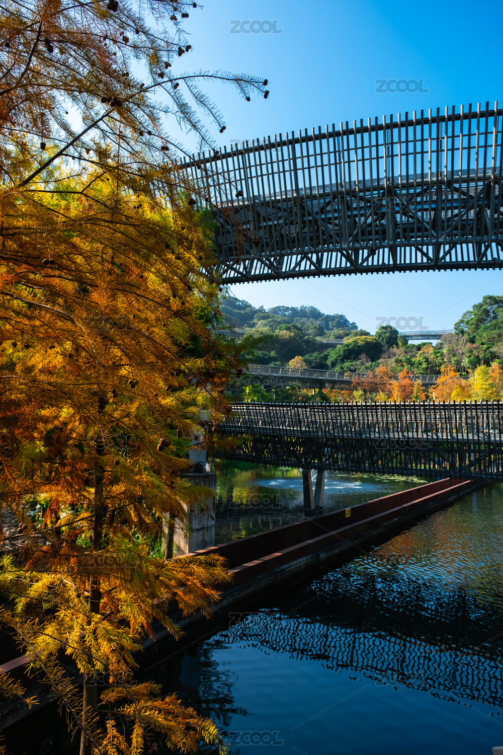 风景,旅游,公园,云,树,桥,水杉,秋天,秋色,天空