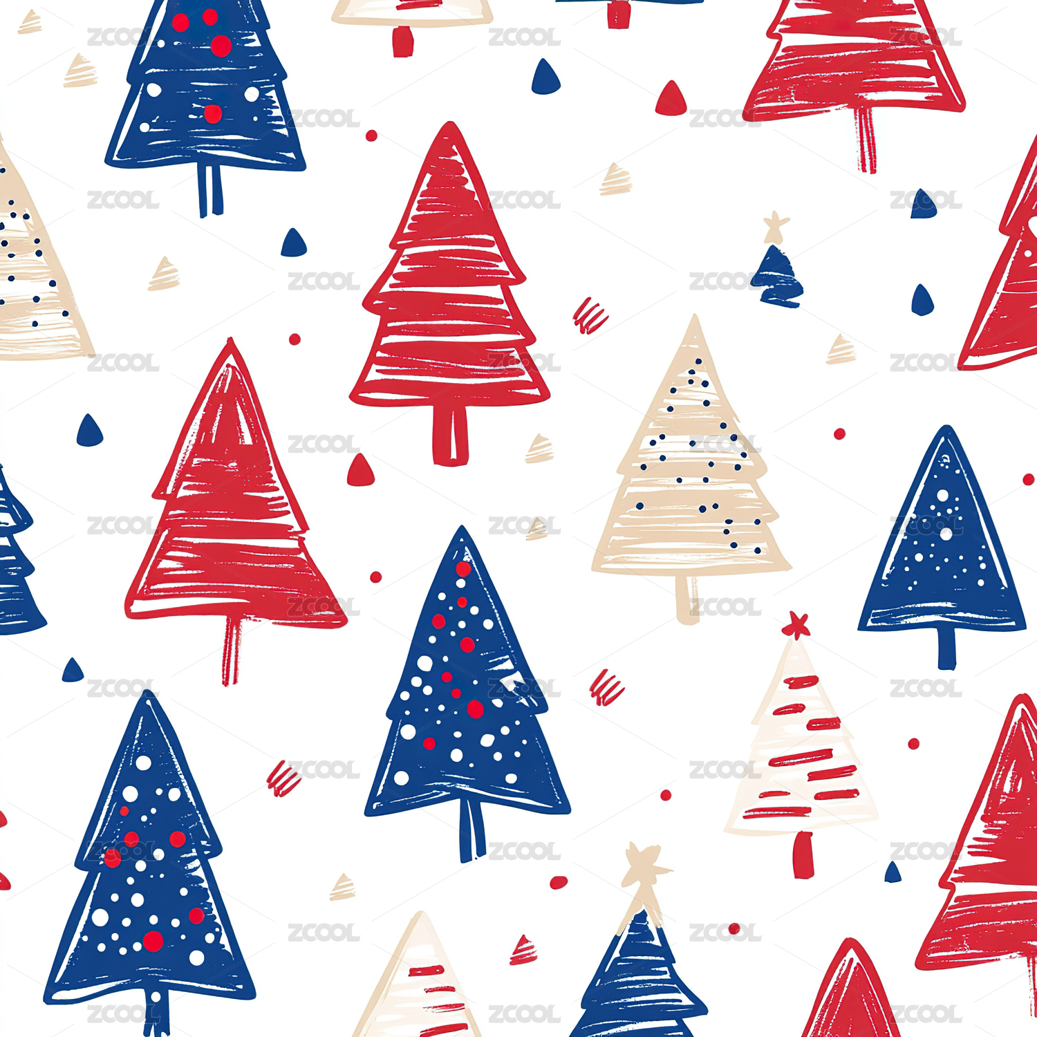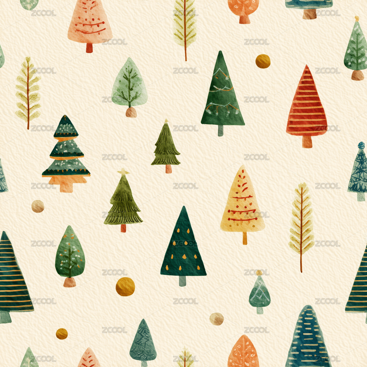 卡通树木线条纹理无缝图