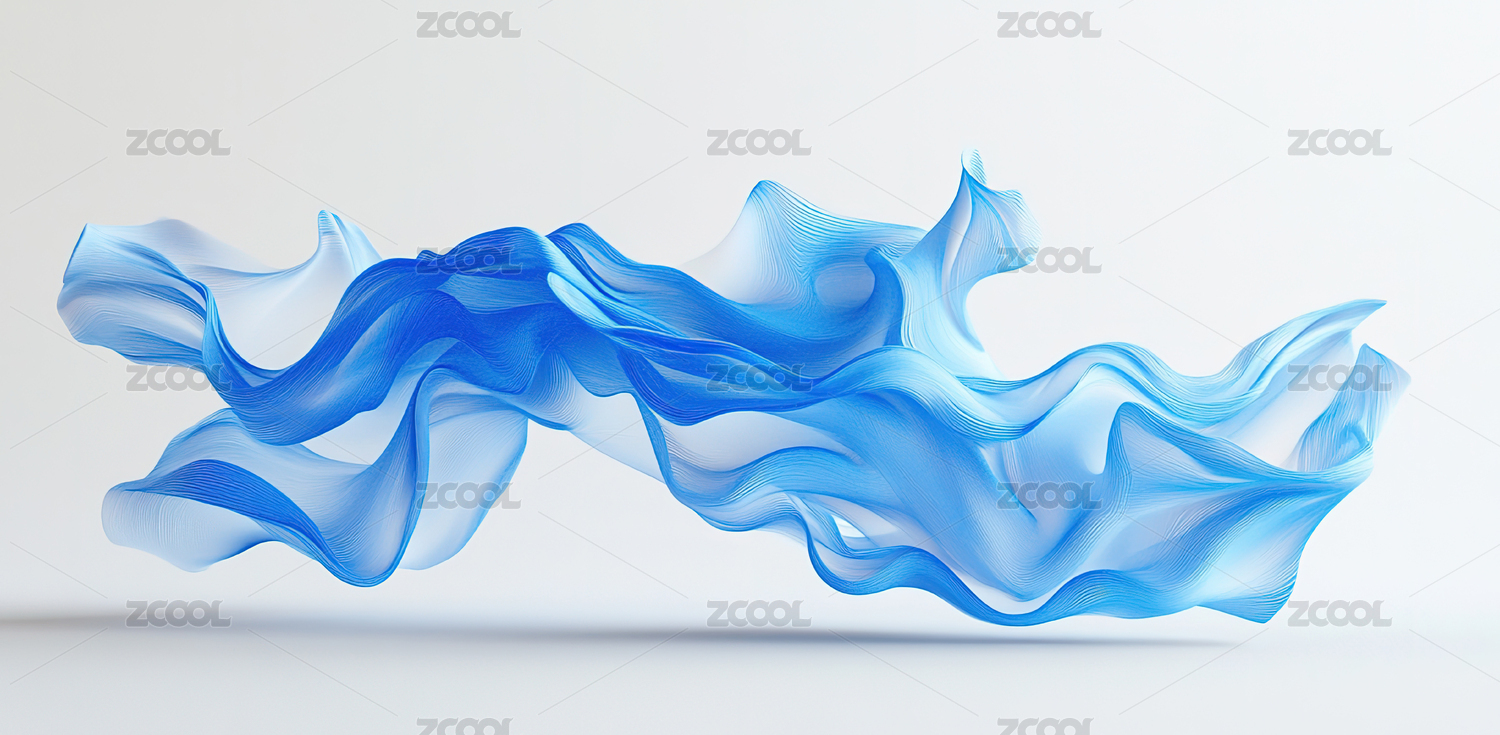 蓝色绸缎飘舞 轻盈优雅 抽象氛围