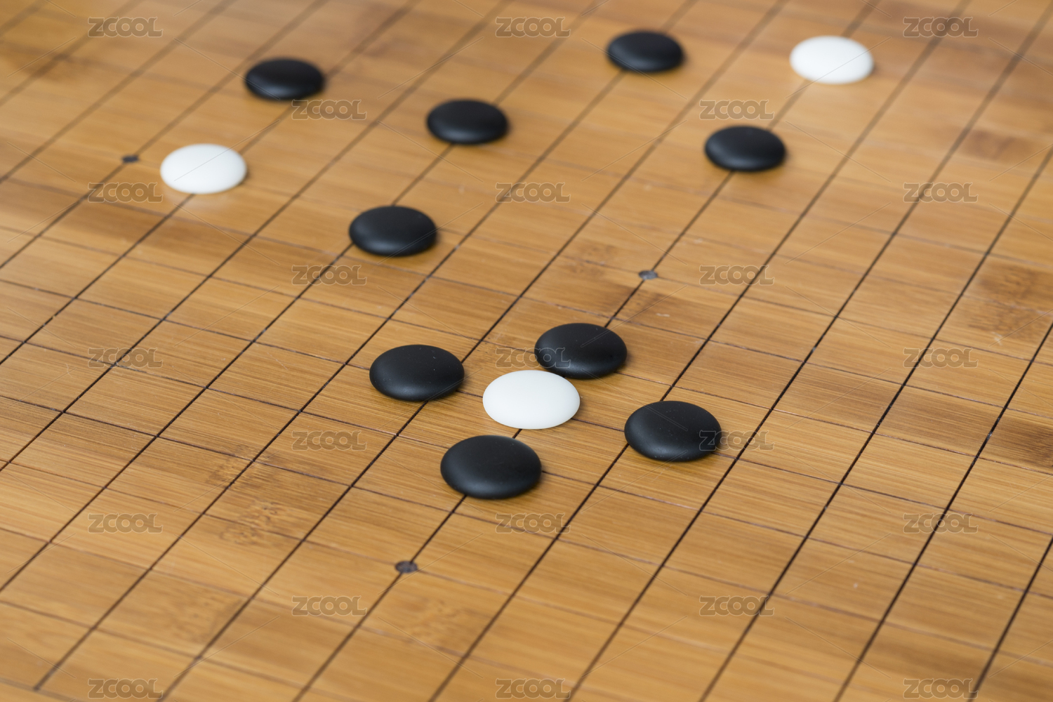 围棋棋盘上散落着几个围棋棋子