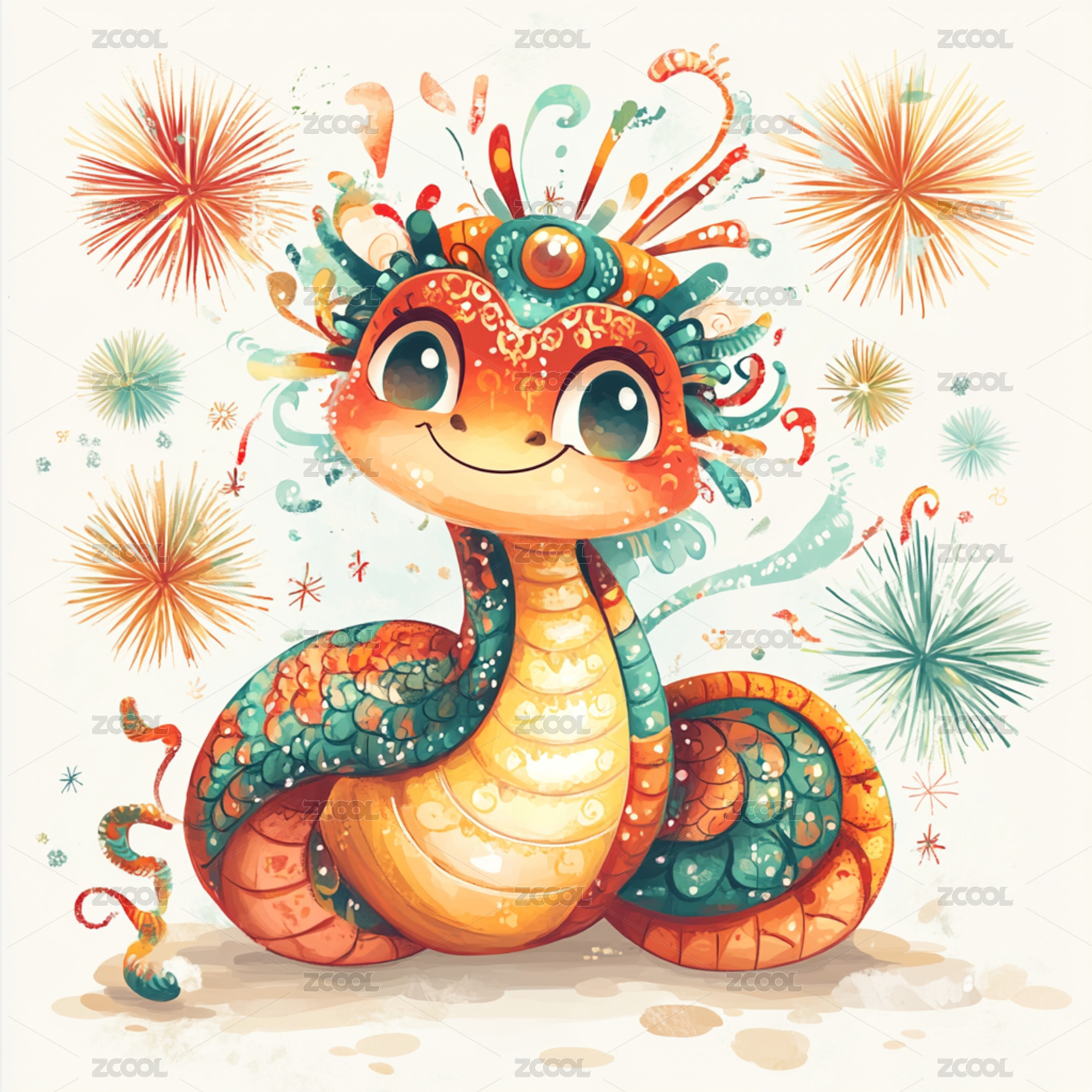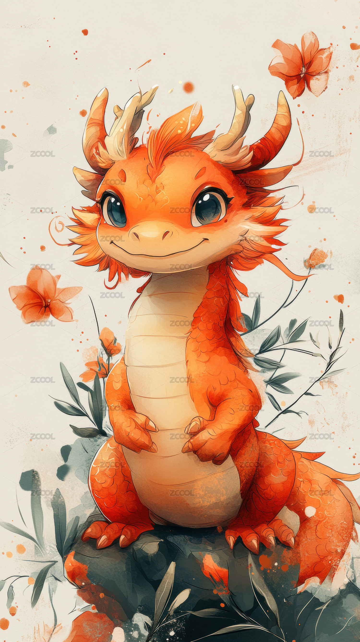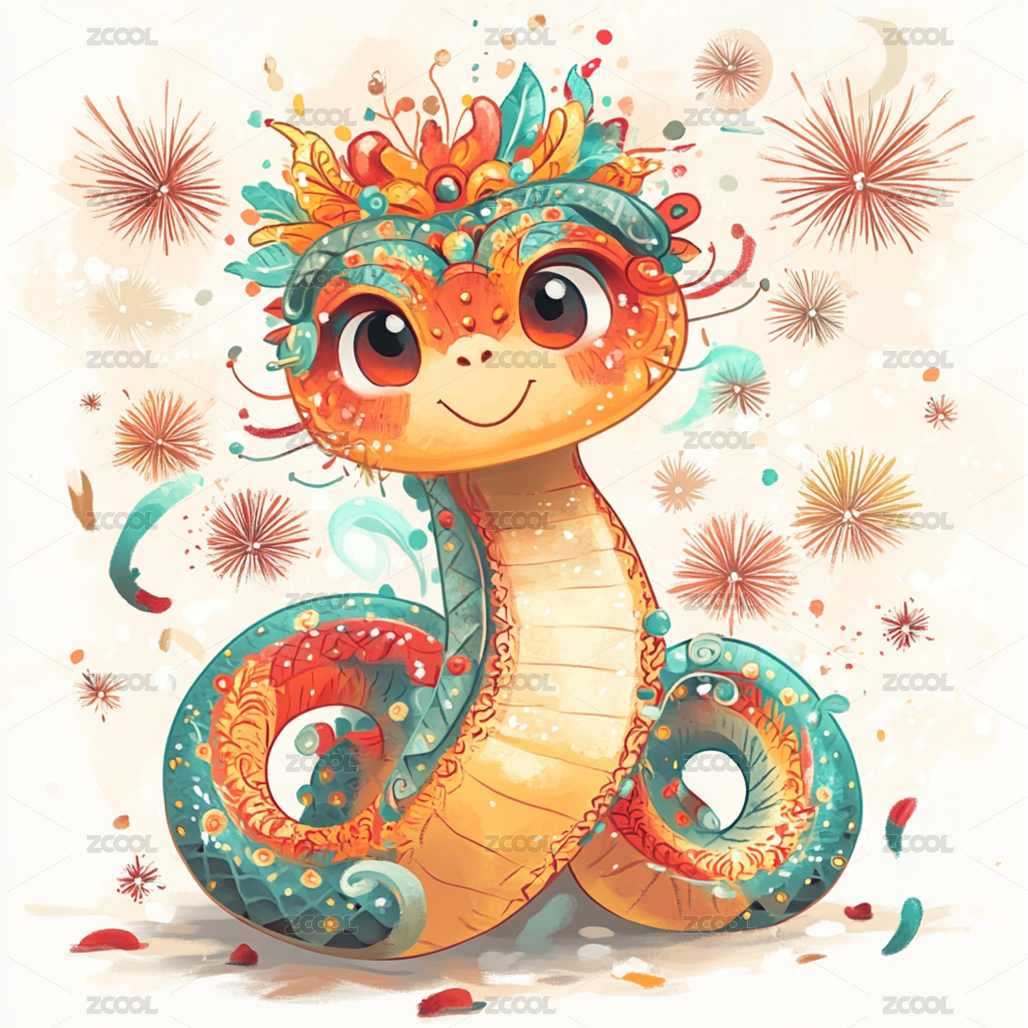 东方十二生肖,动物,贺卡,卡通,可爱,龙,庆祝,十二生肖,一月,中国新年