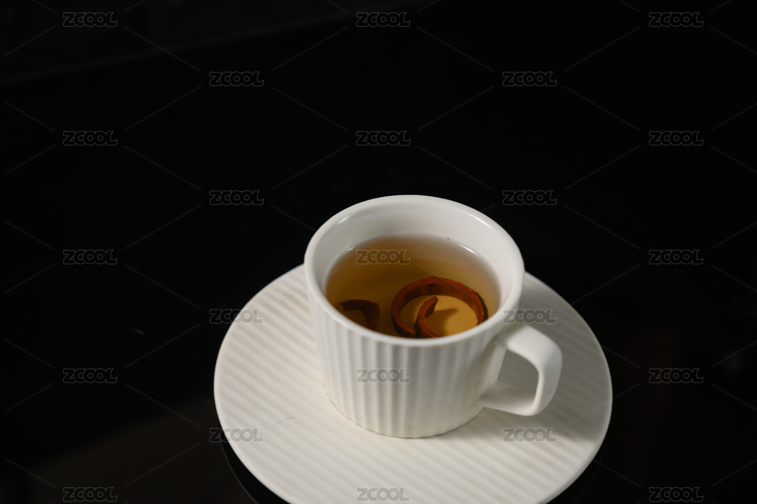 桌面上的杯子里的甘甜可口的金盏菊花茶