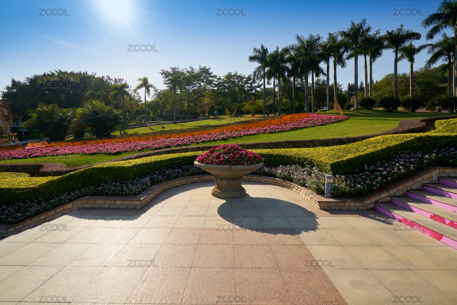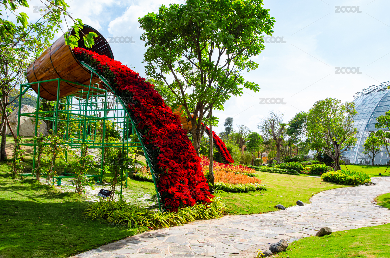 中国广东东莞凤岗龙凤山庄里的花圃与教堂