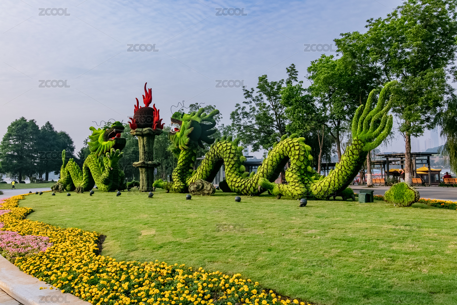 江苏省南京市玄武湖公园菱洲龙兽植物雕像