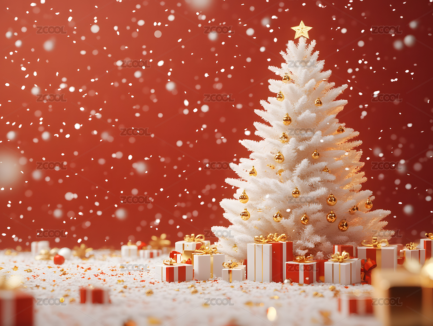 圣诞节雪景树下礼物