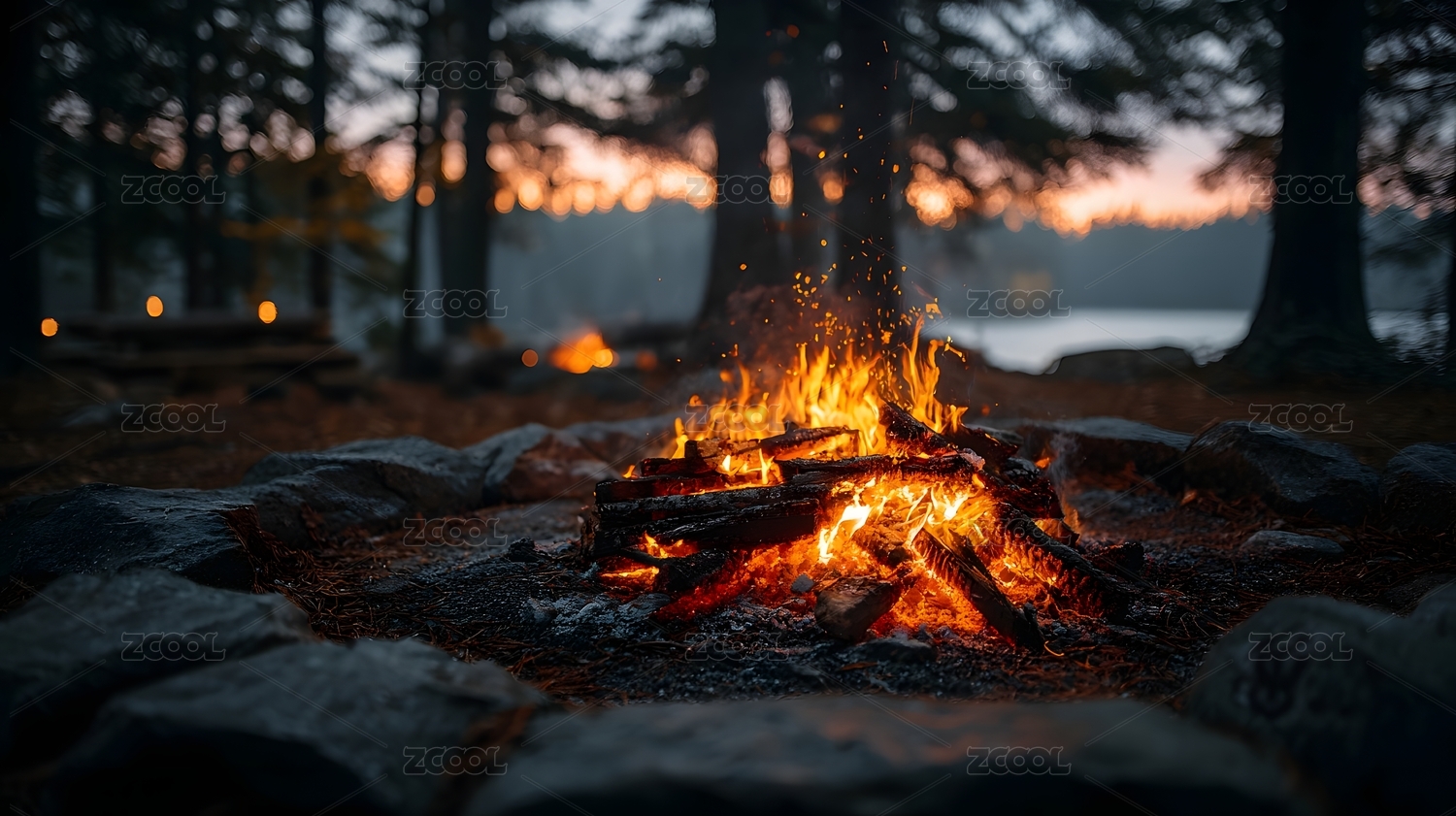 湖边篝火主题