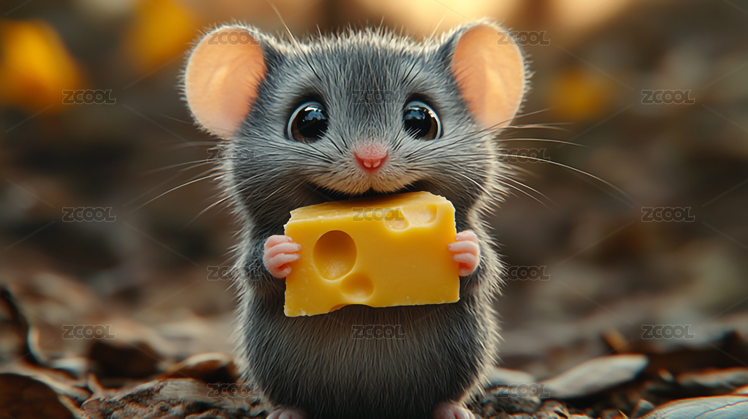 一只抱着奶酪的小老鼠