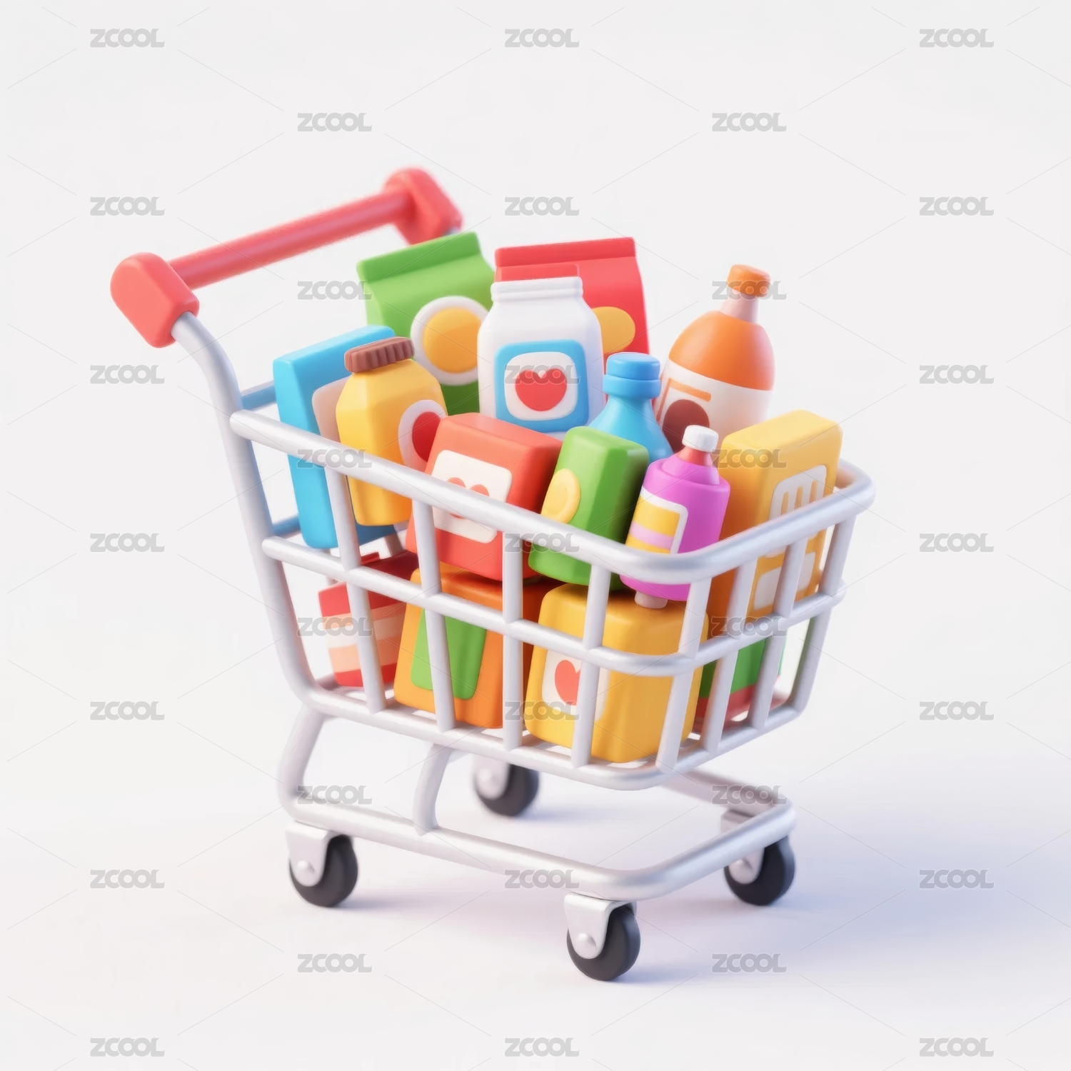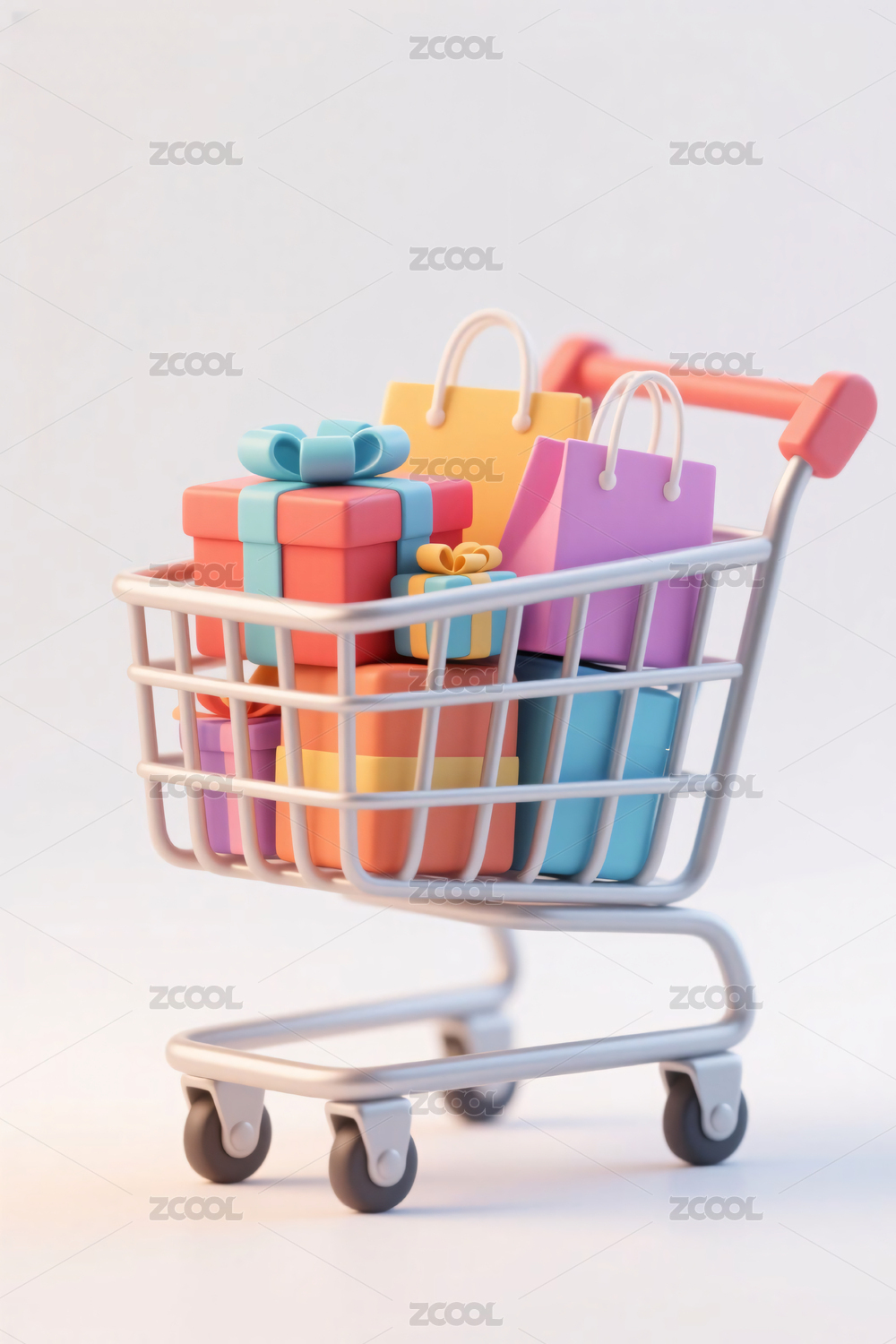 三维,立体,3D,卡通,礼物,篮子,手,递送,电商,购物