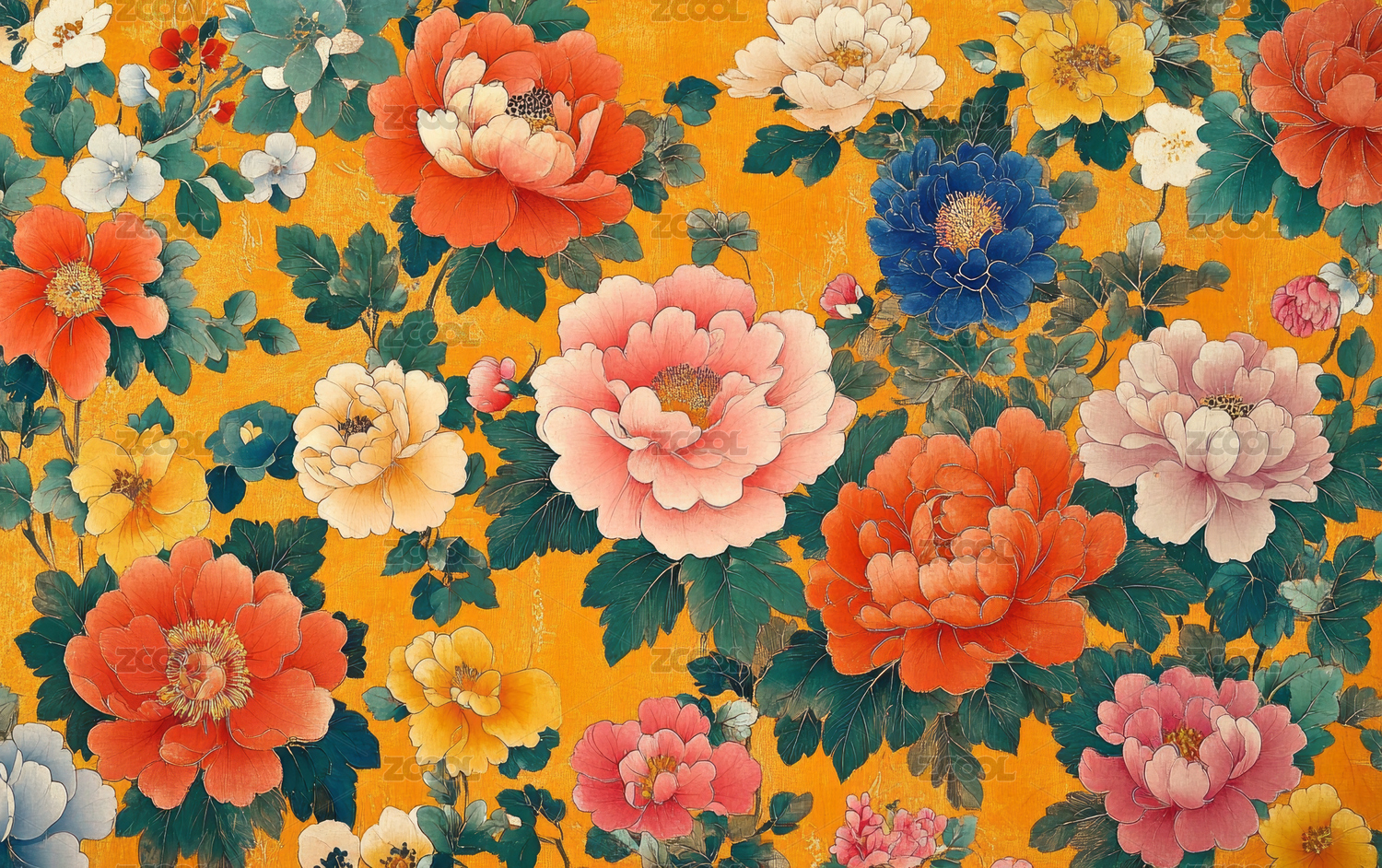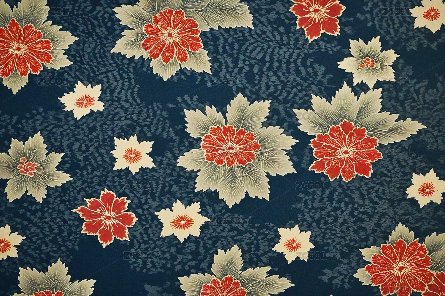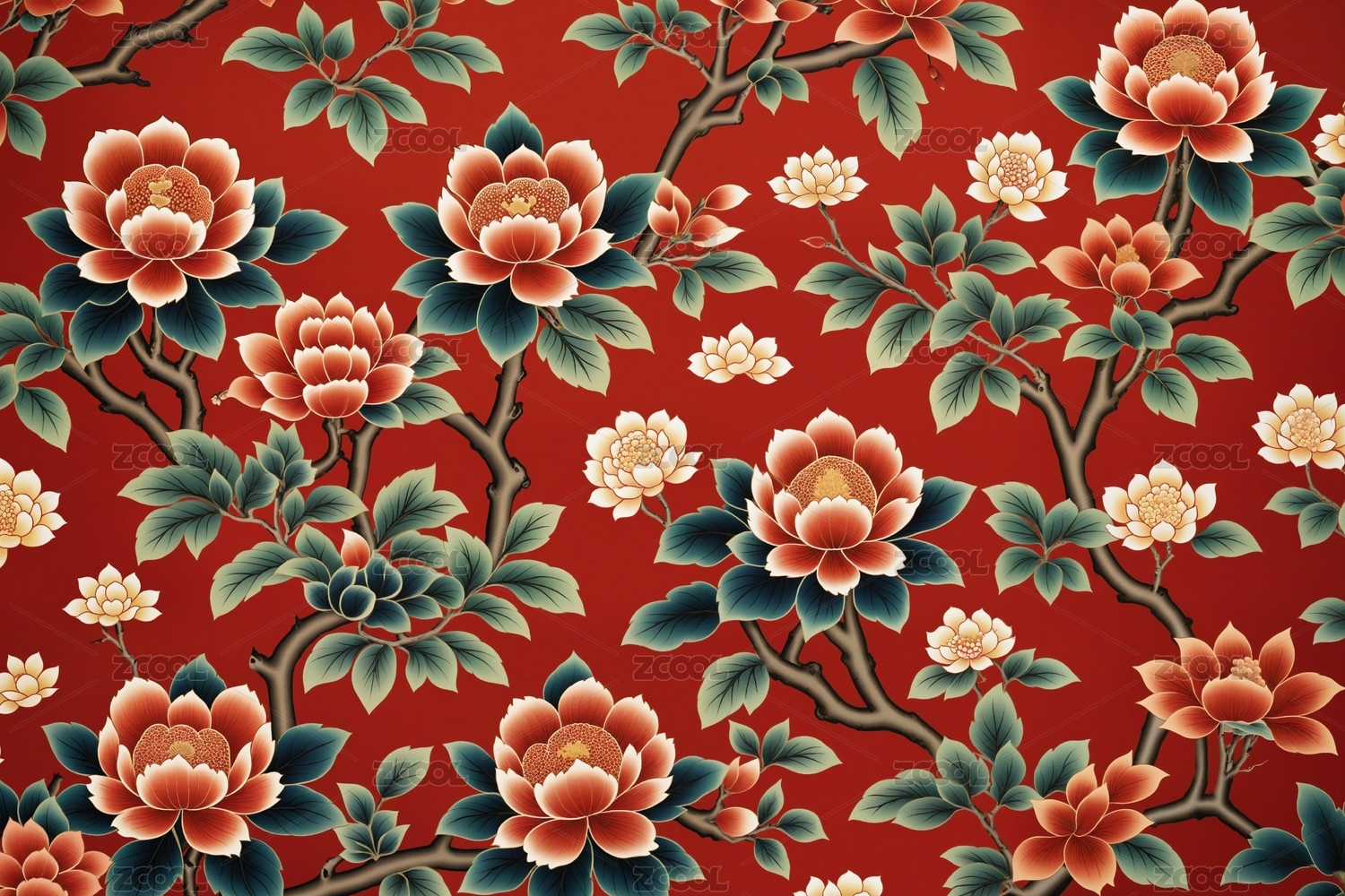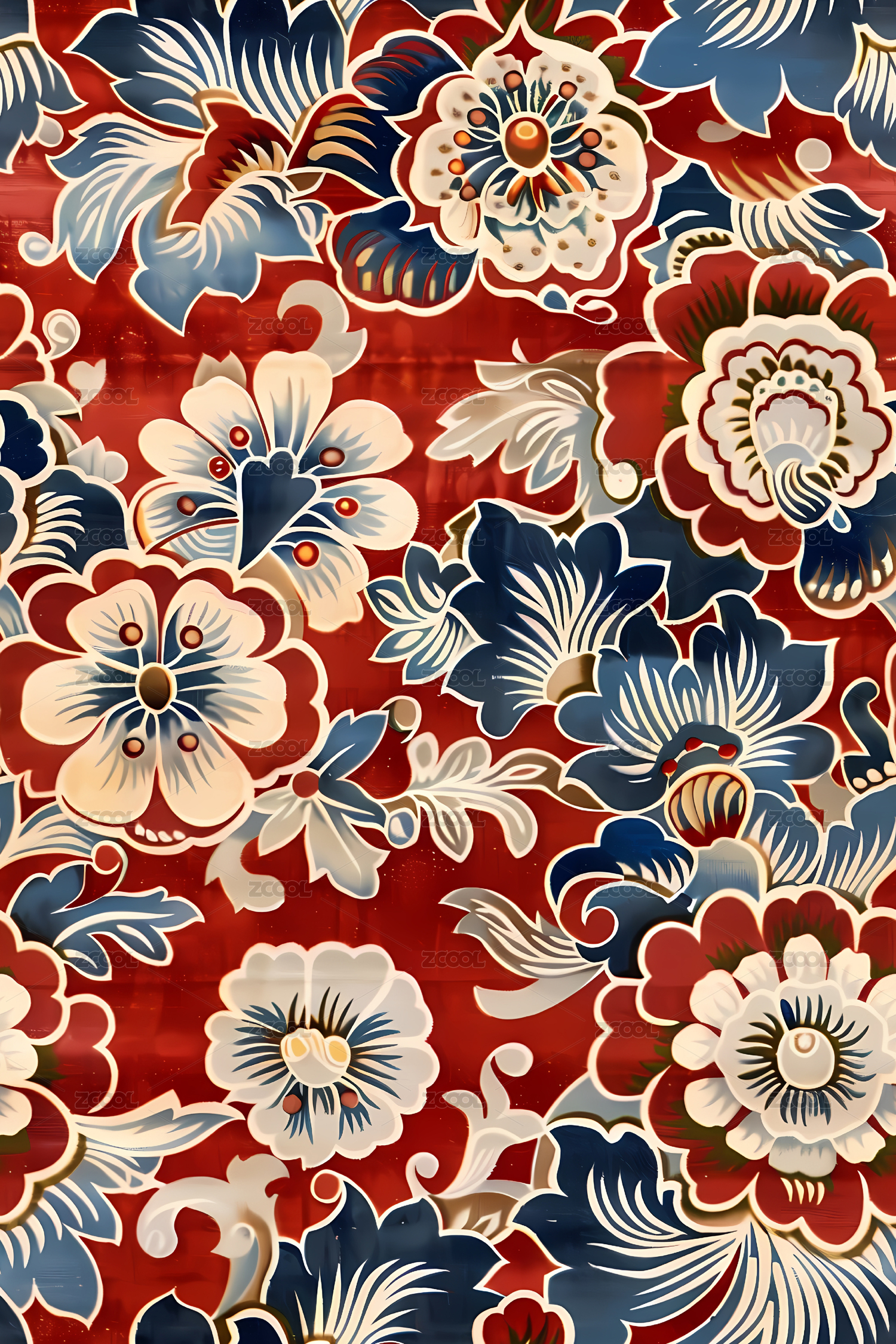 花卉,红色,蓝色,金色,叶子,背景,图案,设计,艺术,装饰