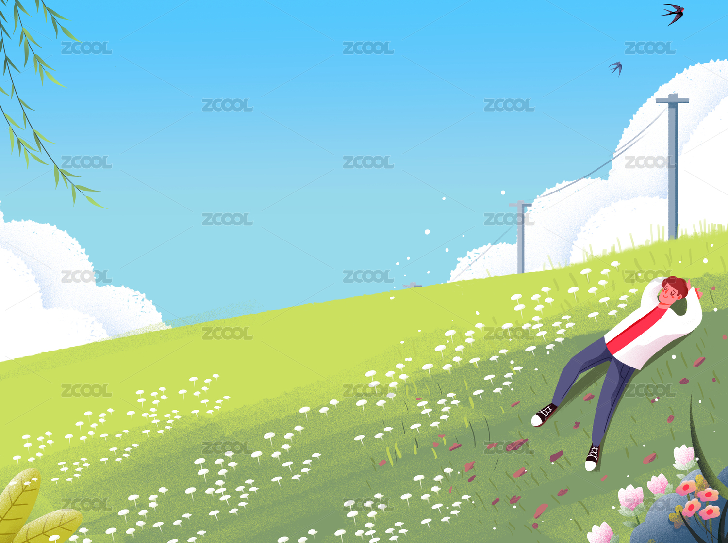 女孩踏青插画