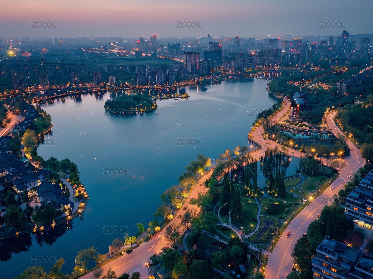 湖泊现代城市建筑大楼繁荣夜景高清广告海报