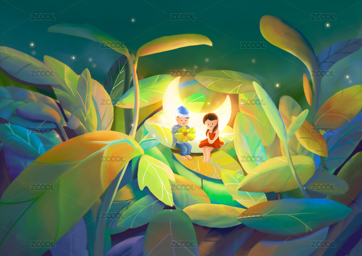 深夜里丛林中两个分享小秘密的人
