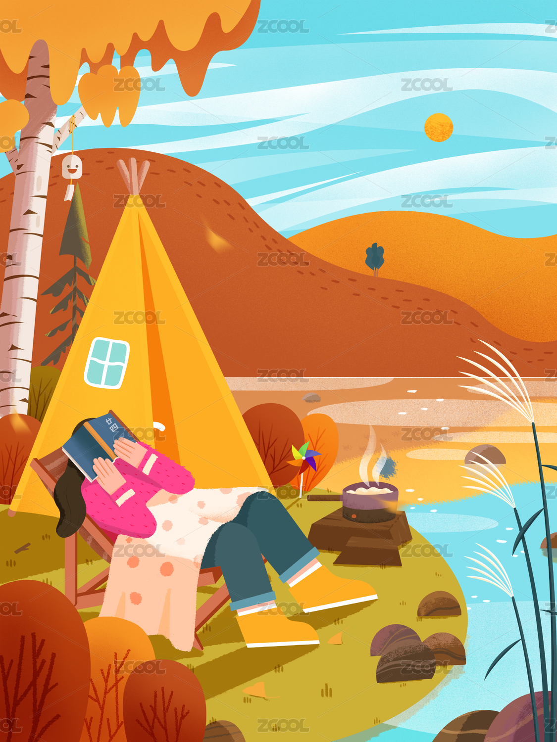 卡通手绘露营活动插画