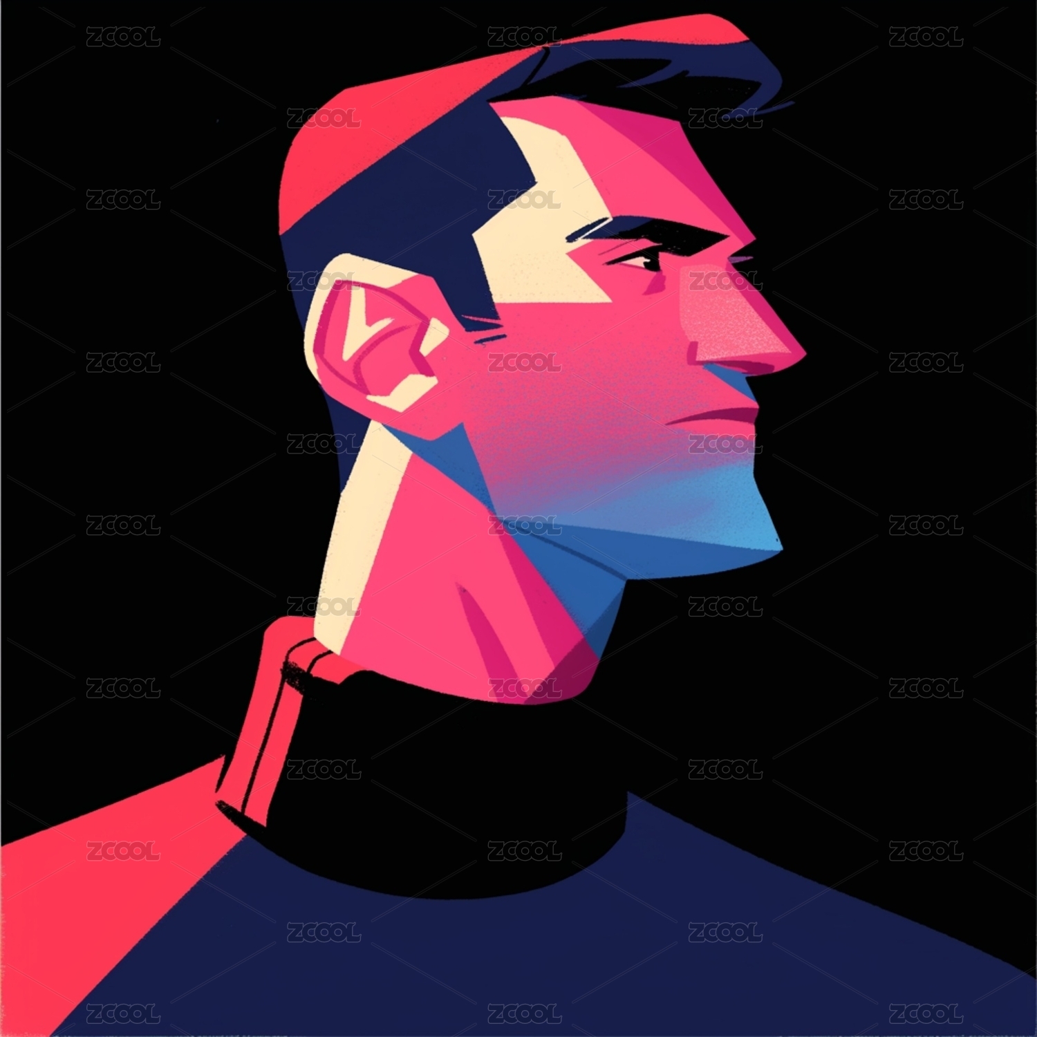 黑色男士时尚肖像大头照矢量扁平化设计背景