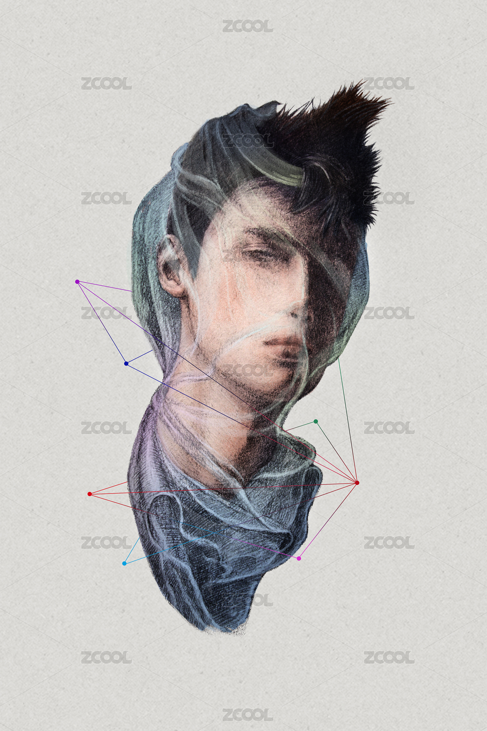 人物,复古,人物插画,抽象,寓意,素描色稿,宁静,阴郁