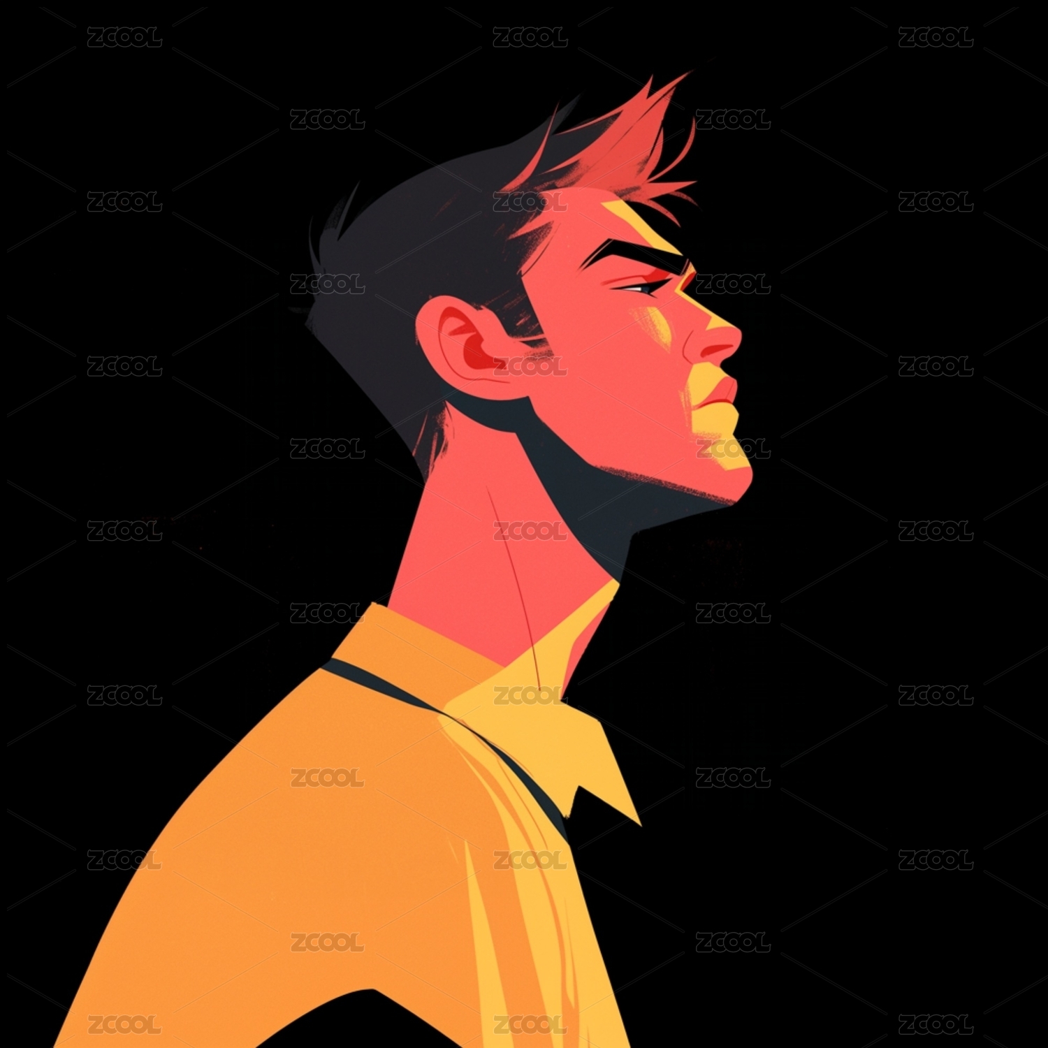 橙绿男士时尚肖像大头照矢量扁平化设计背景