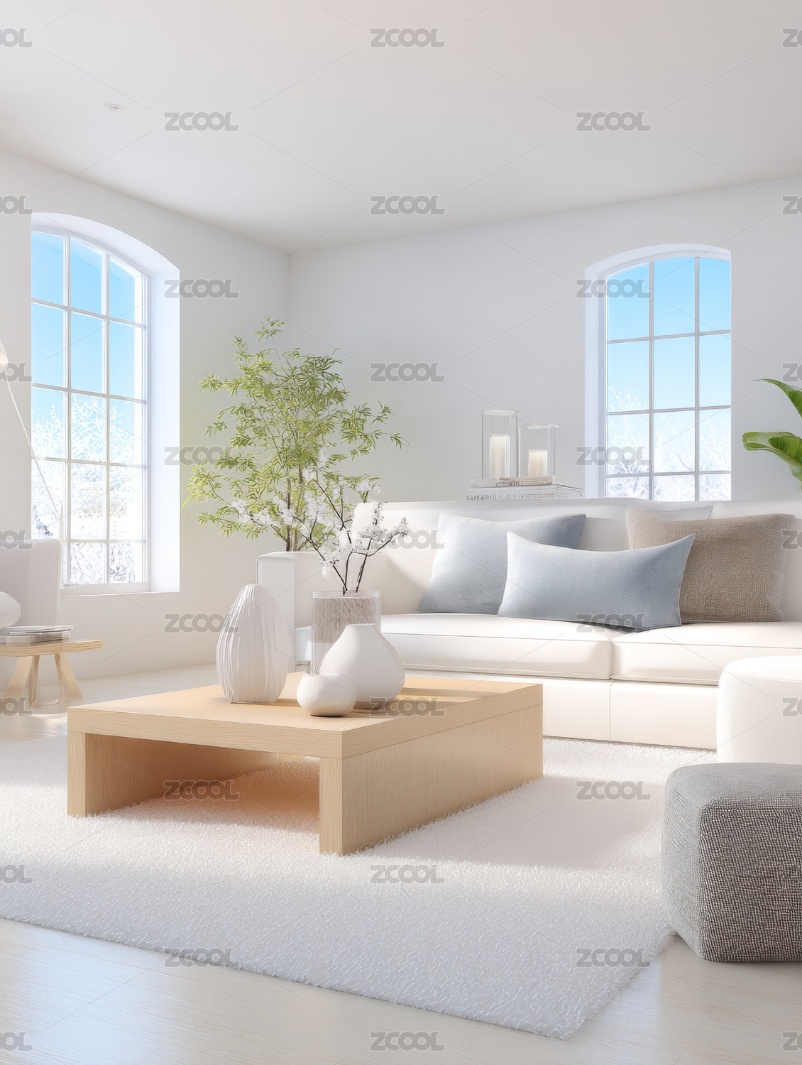 明亮现代的客厅室内场景
