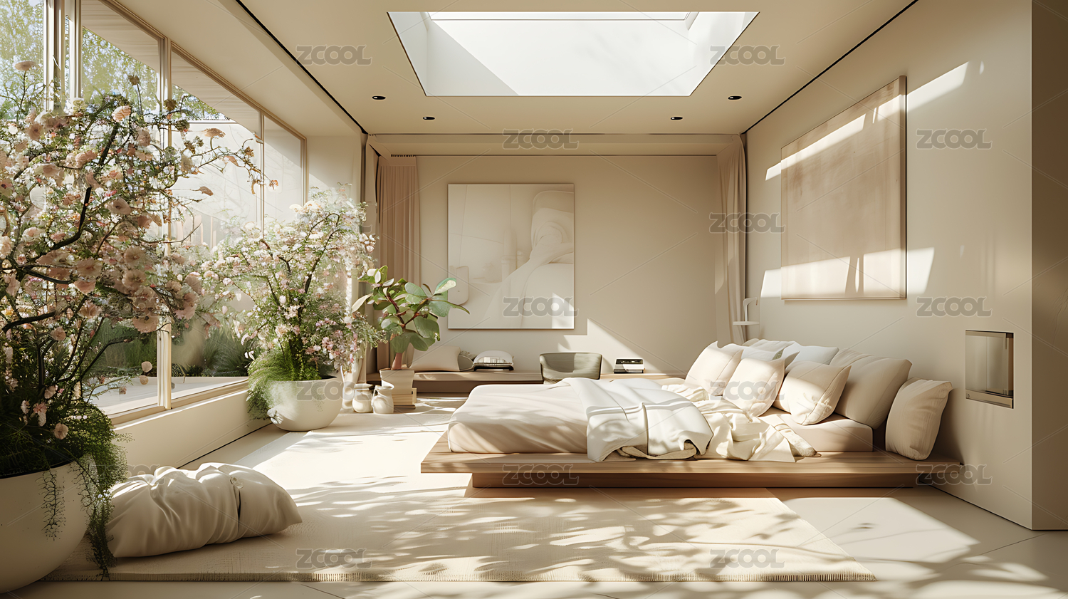 平台床,中性色,大窗户,现代,创意,家居,房屋,景观,城市,极简