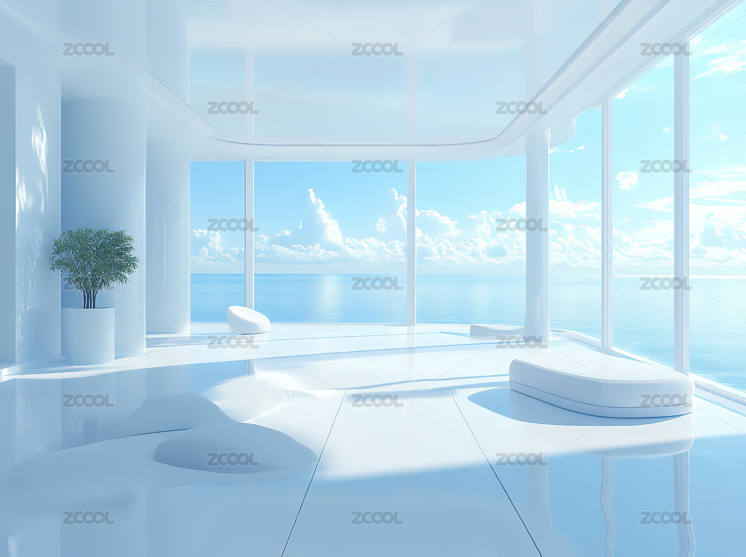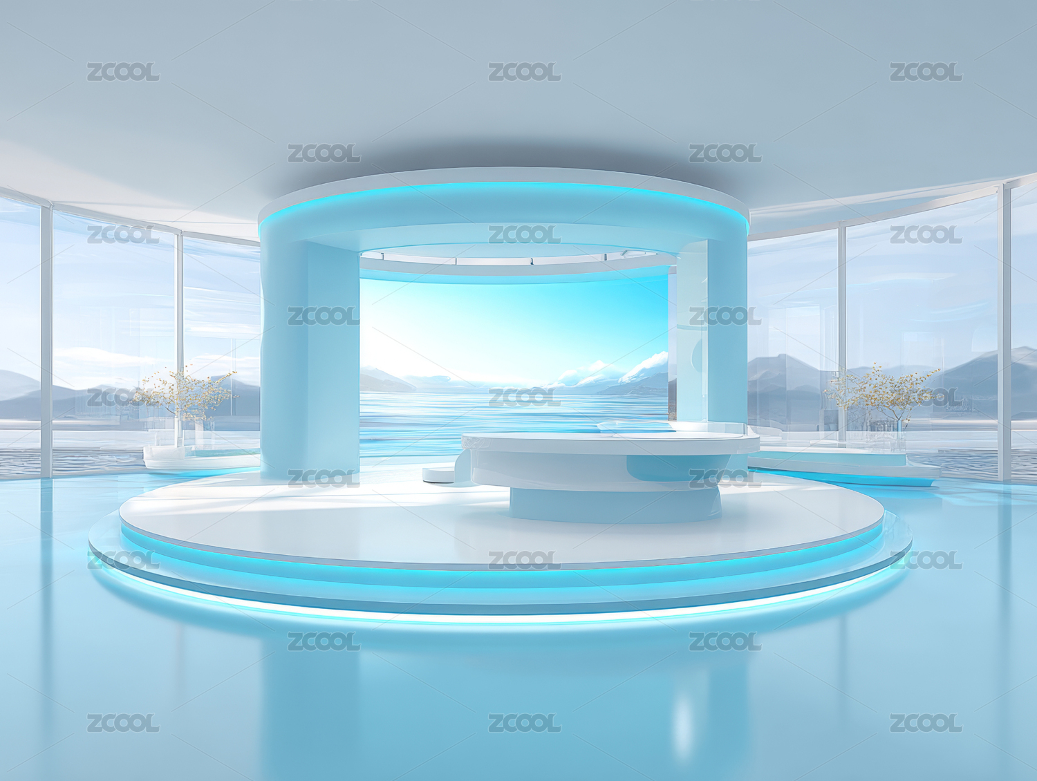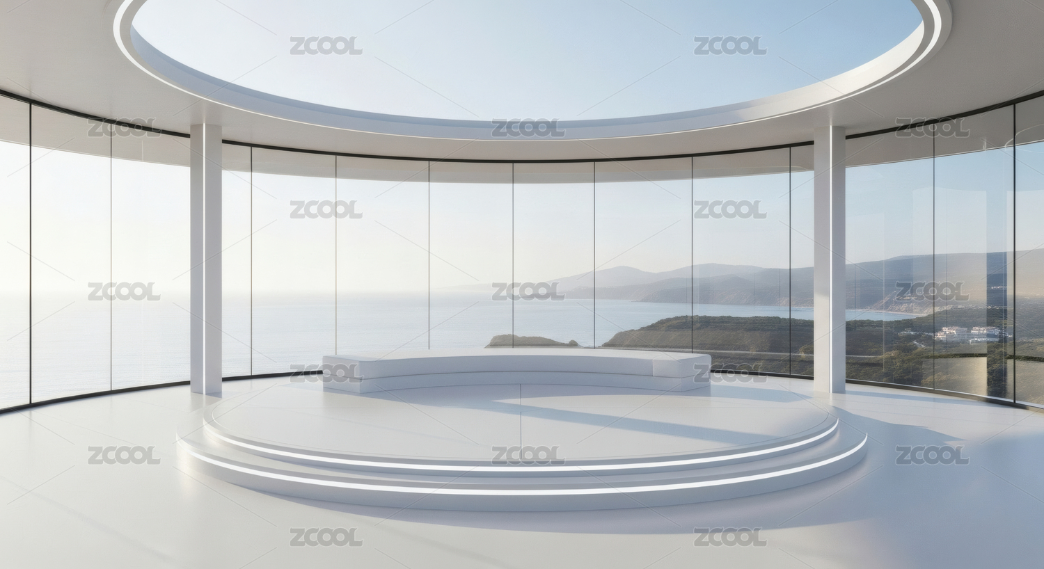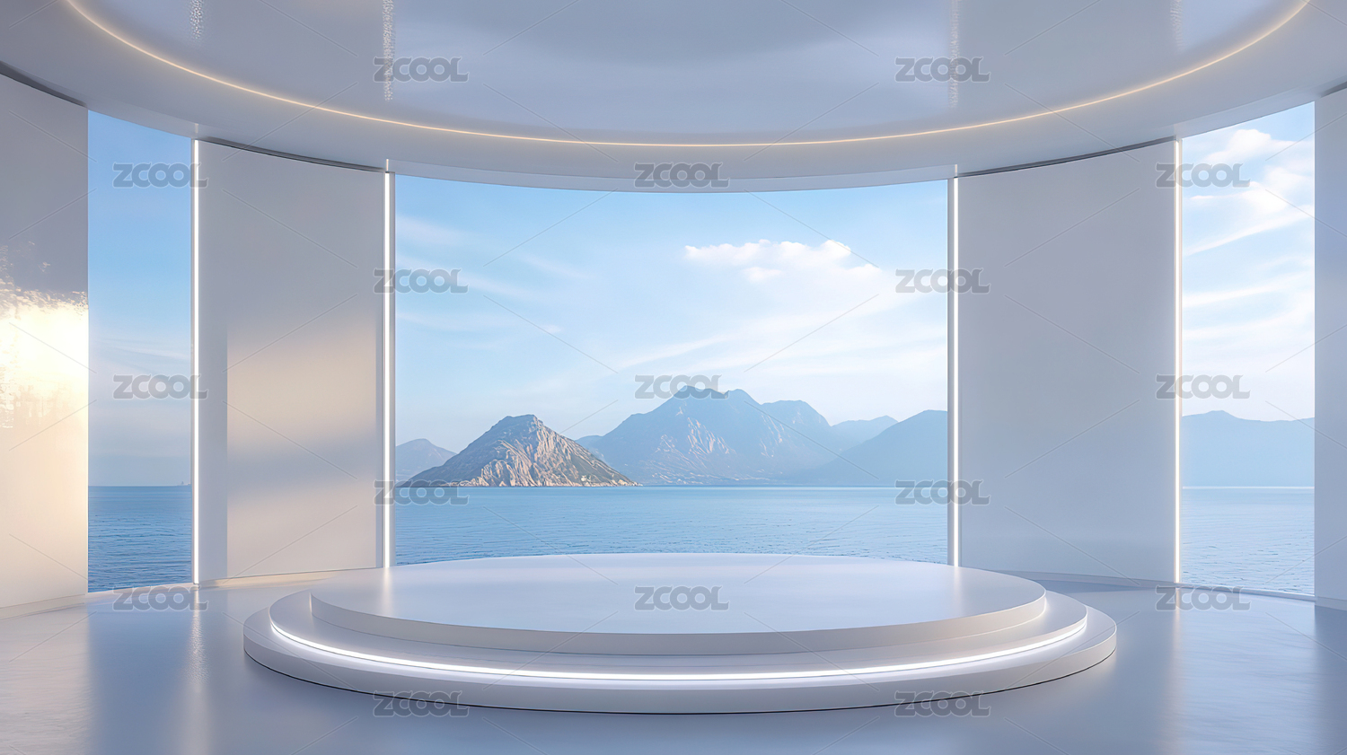 AIGCTP2024,房间,圆形基座,大窗户,窗户,山脉,白色,空间,未来主义,墙壁