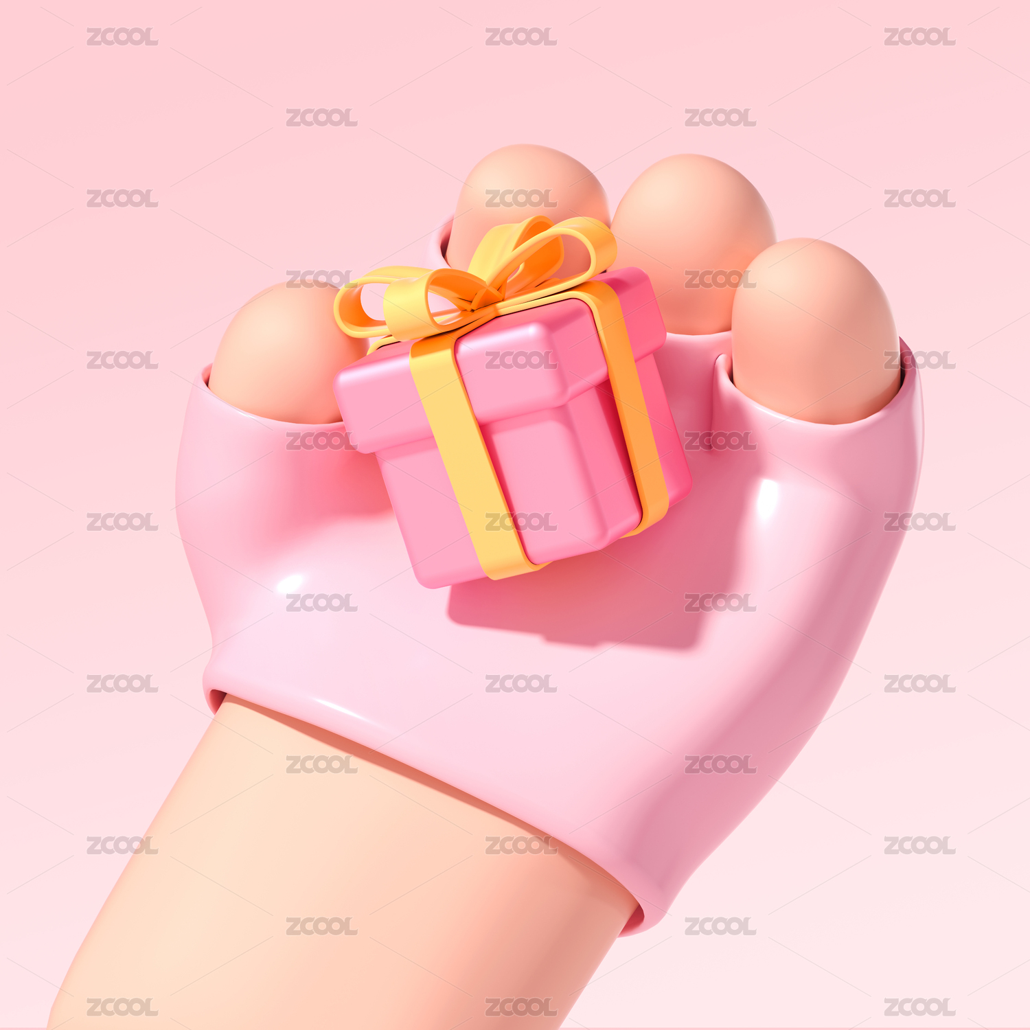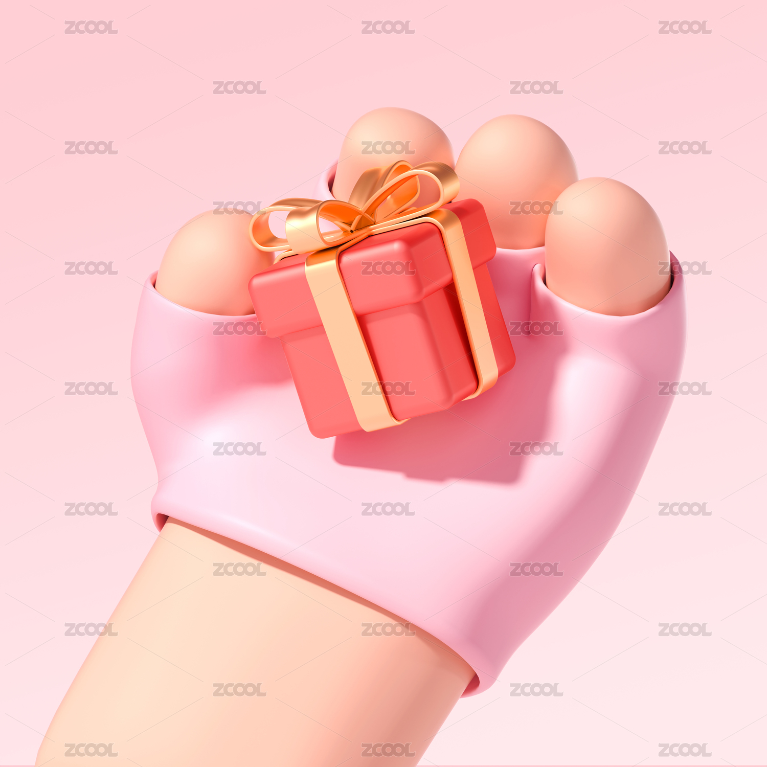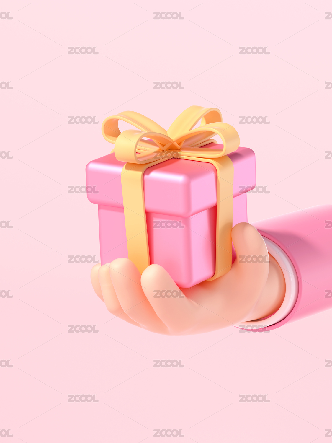 情人节大手捧着粉色丝带礼盒配图3D渲染