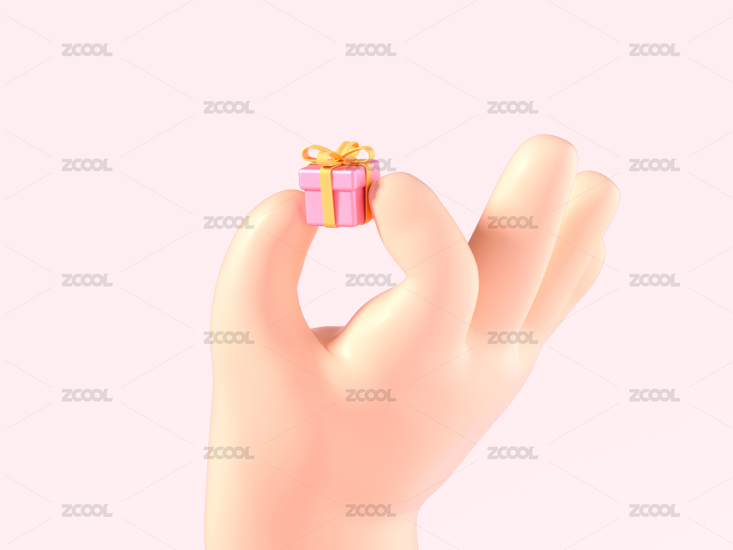 情人节大手手指捏着粉色丝带礼盒创意互动配