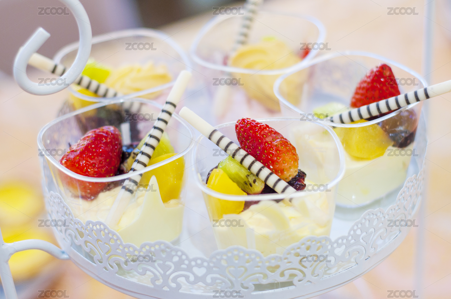 托盘里摆放的杯子奶油蛋糕,可爱甜品。