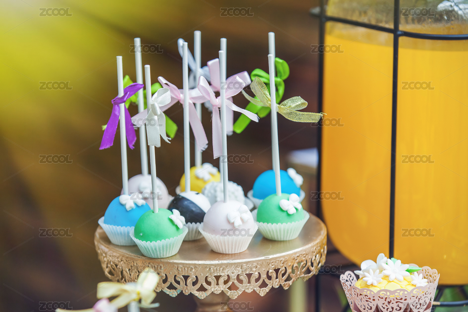 托盘上的棒棒糖翻糖甜点,可爱甜品。