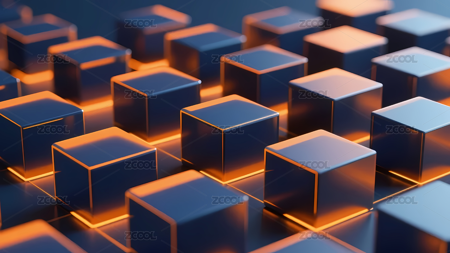 蓝橙立方体堆叠的科技背景